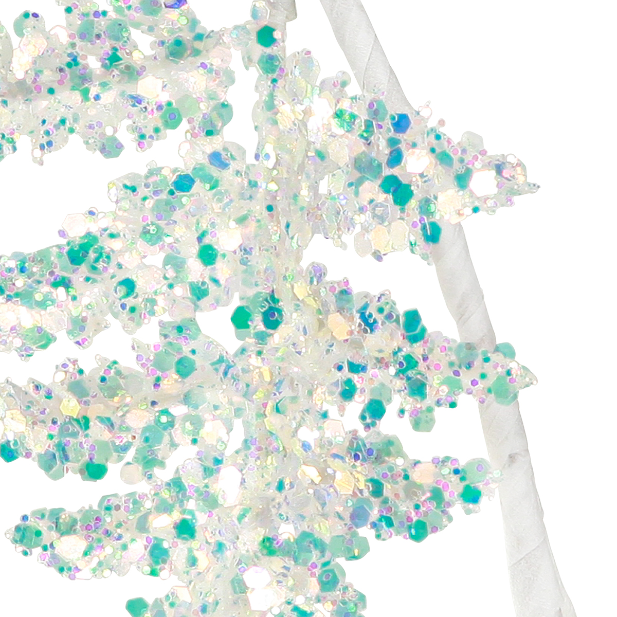 Vytvorte si u vás doma čarovný zimný svet s našou ozdobnou závesnou papradím. Kombinácia žiarivo bielej, ľadovo modrej a trblietavých trblietok robí z tejto závesnej dekorácie skutočný pútač pre vianočné a novoročné obdobie.