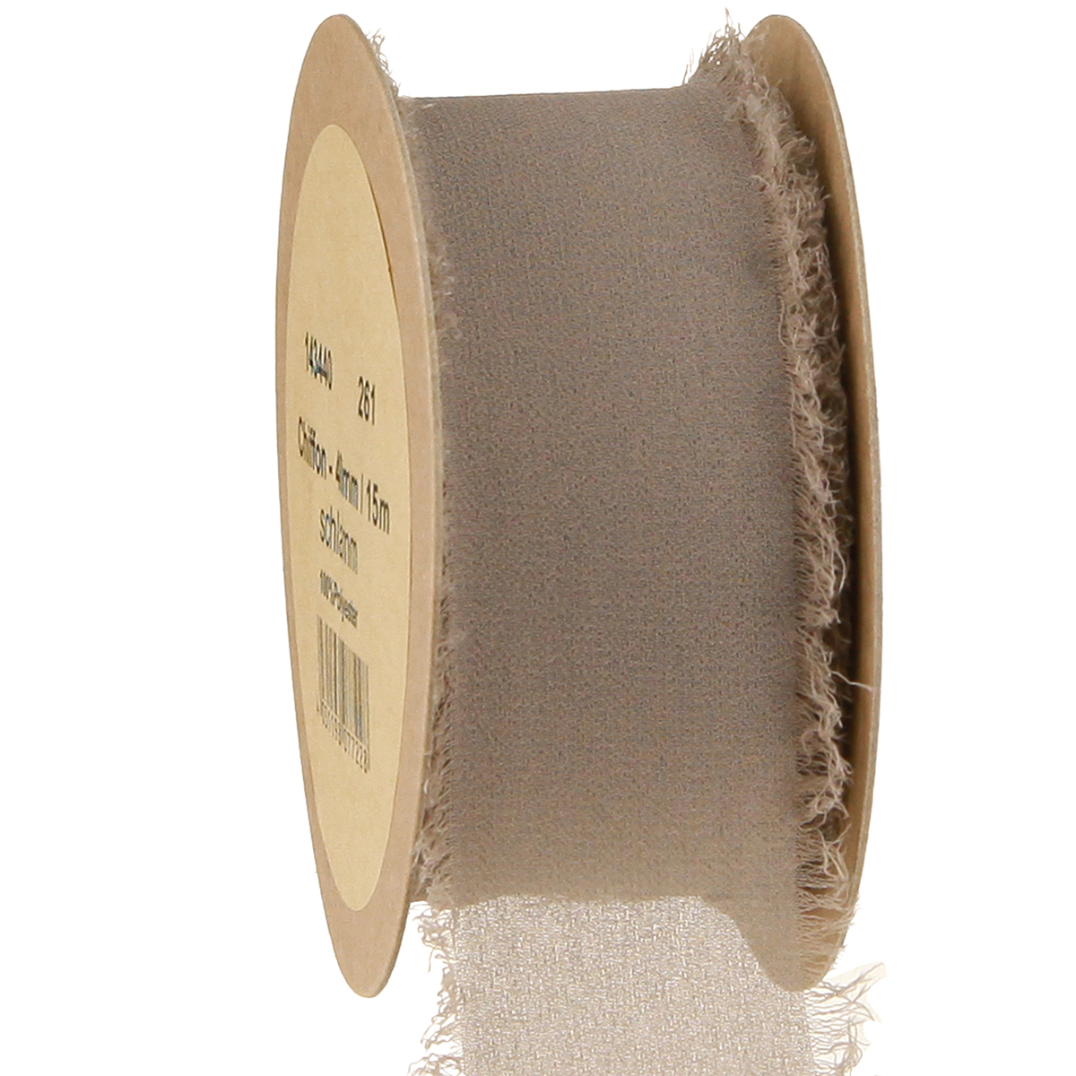 Naša 40 mm široká a 15 m dlhá stuha so strapcami vnesie do vašich projektov nielen štýl, ale aj kvalitu. Bahnohnedá látková stuha vyrobená z najjemnejšieho šifónu má šikovne vynikajúcu textúru a intenzitu farby, ktorá ju odlišuje od bežných ozdobných stúh. Táto tkaná stuha so svojím jemne strapcovým okrajom ponúka niečo pre kvetinové aranžmány, darčekové balenie alebo ako ozdobnú stuhu vo vašej domácnosti.