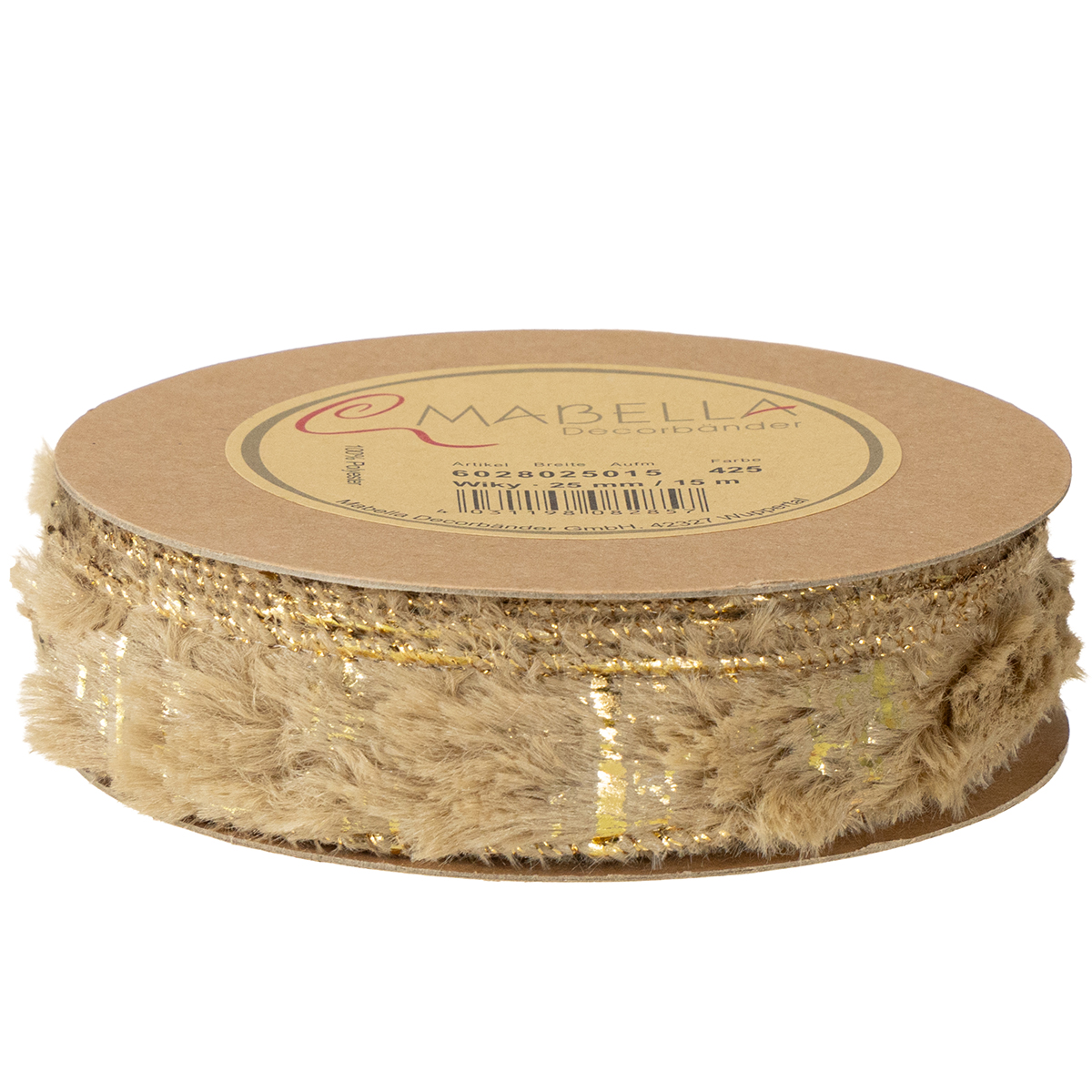 Názov produktu: Dekoračná stuha s kožušinou, stuha z umelej kožušiny, hnedozlatá, 25 mm, 15 m