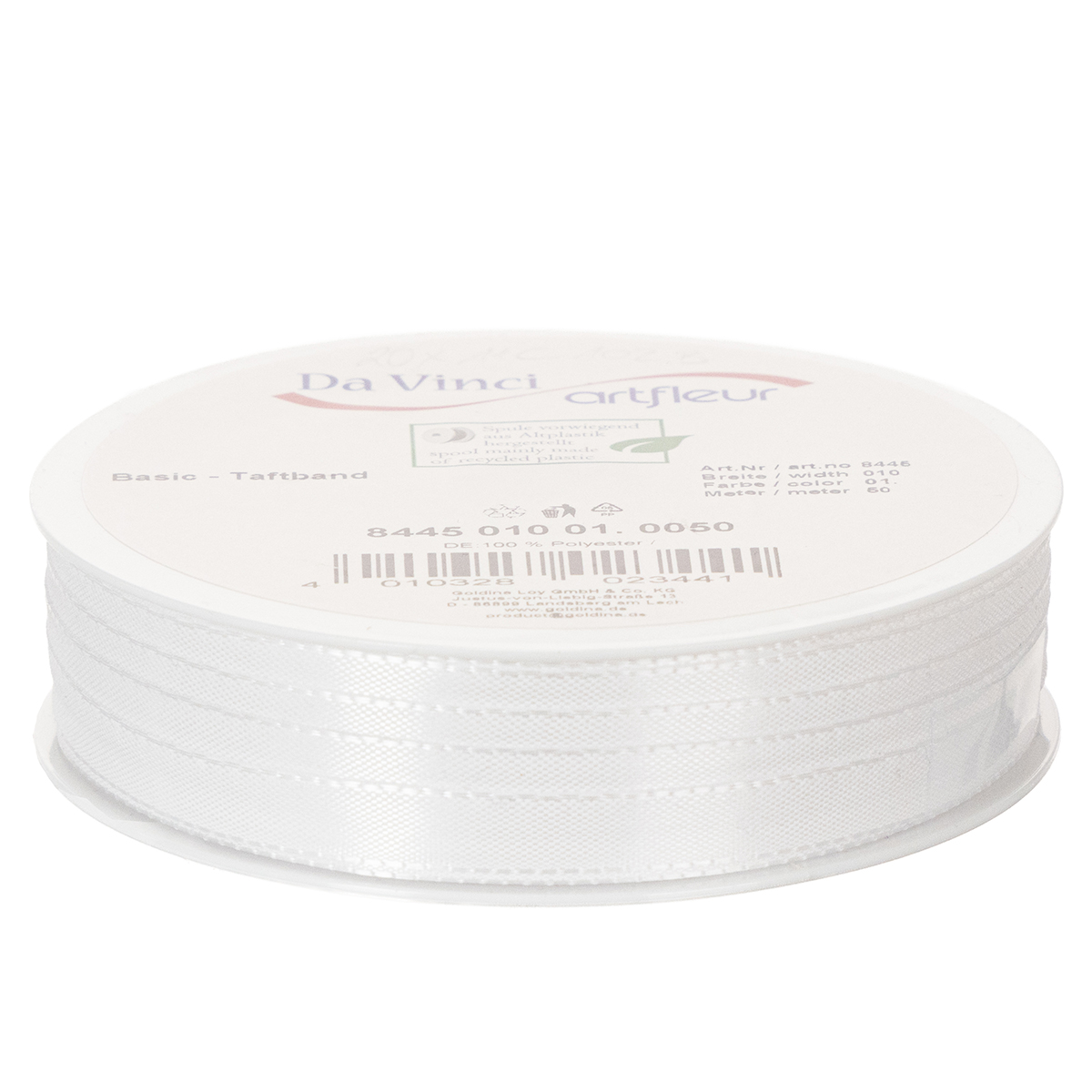 Dekoračná taftová stuha, biela, šírka 10 mm, dĺžka 50 m