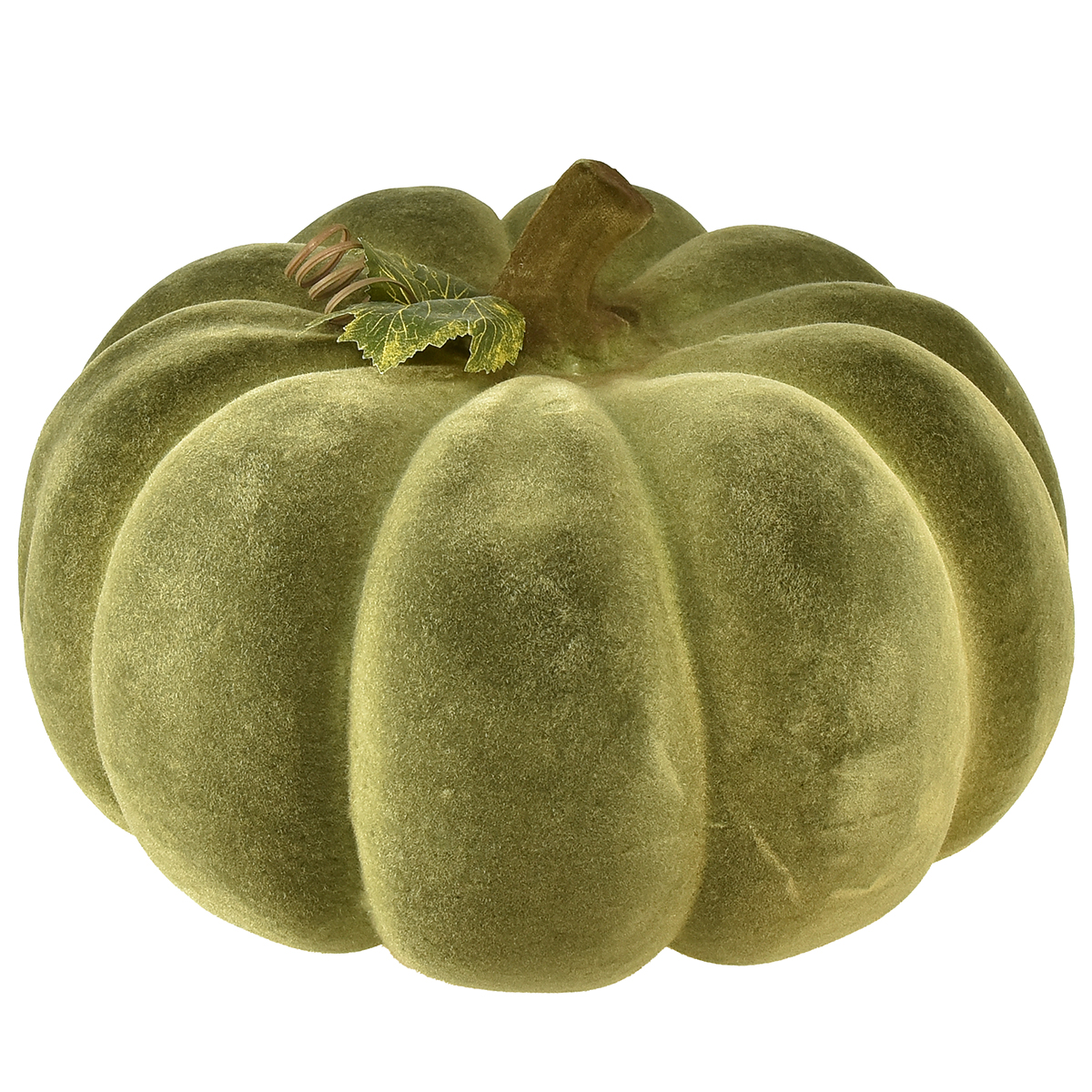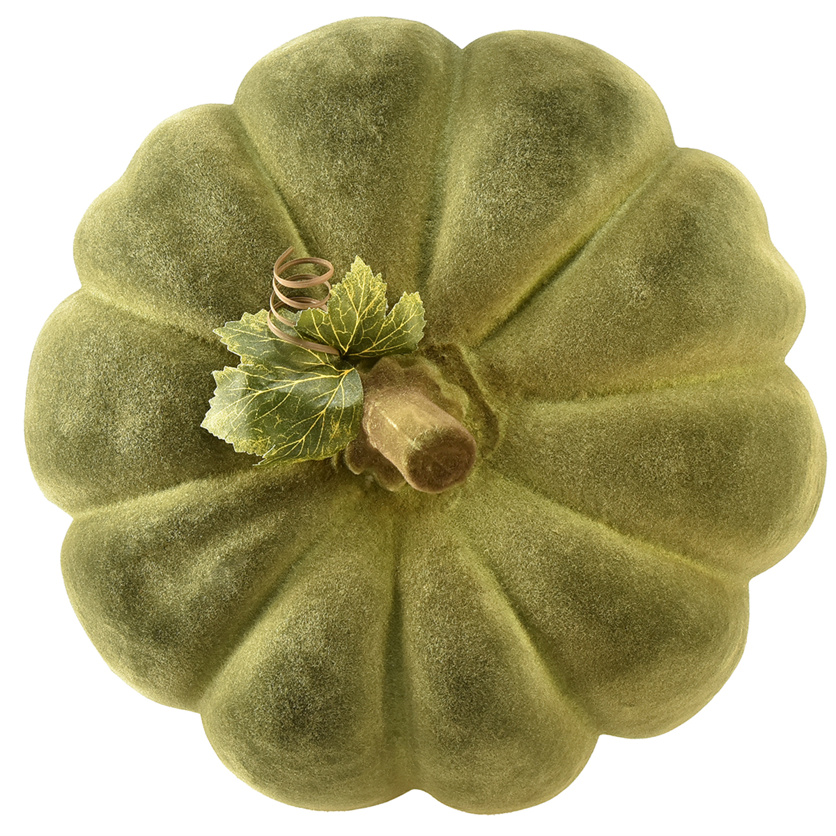 Dekoračná tekvica flockovaná zelená – zamatová, krásna jesenná dekorácia 32cm