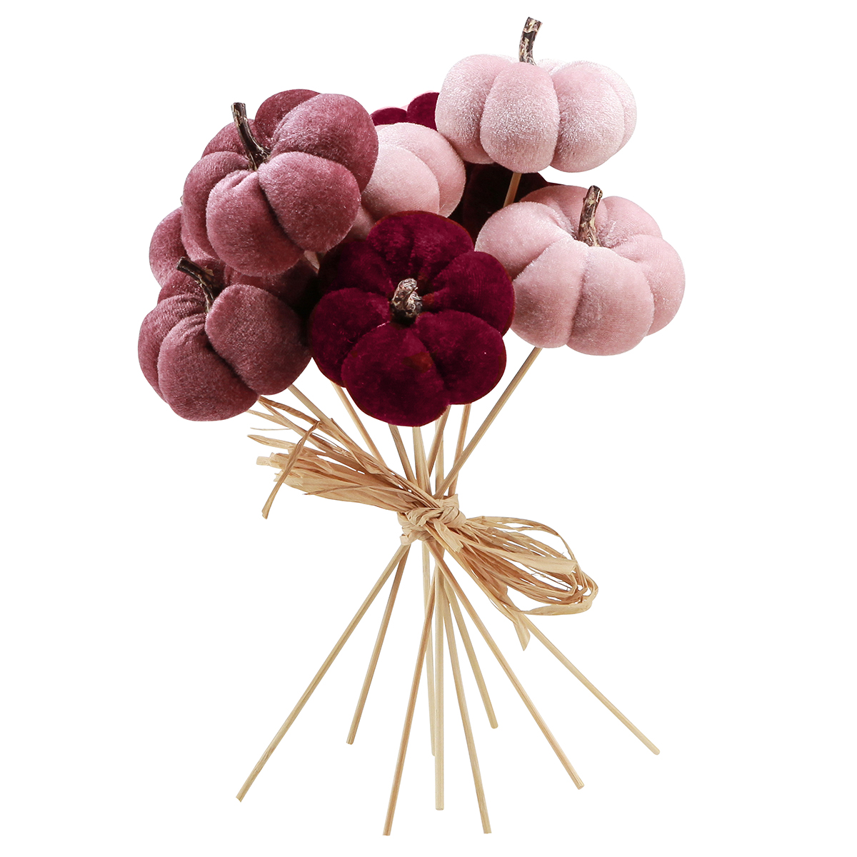 Dekoračná tekvica z látkovej tekvice na paličke bordová ružová Ø7cm 9 ks
