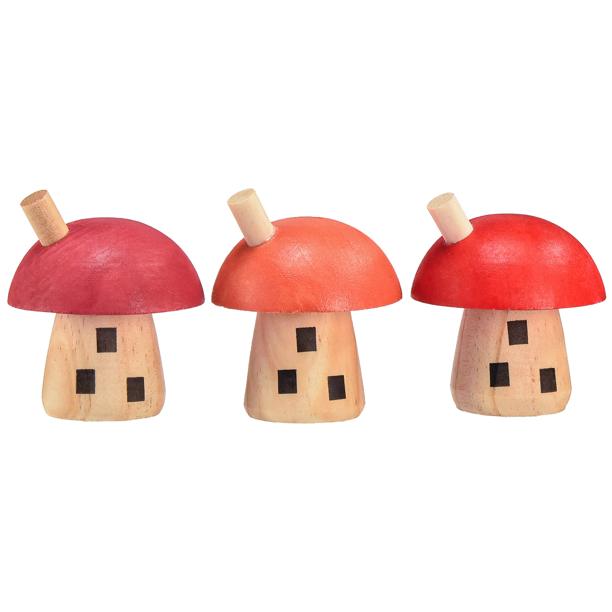 Dekoračné huby drevený domček červená oranžová drevená dekorácia 6×5cm 6ks