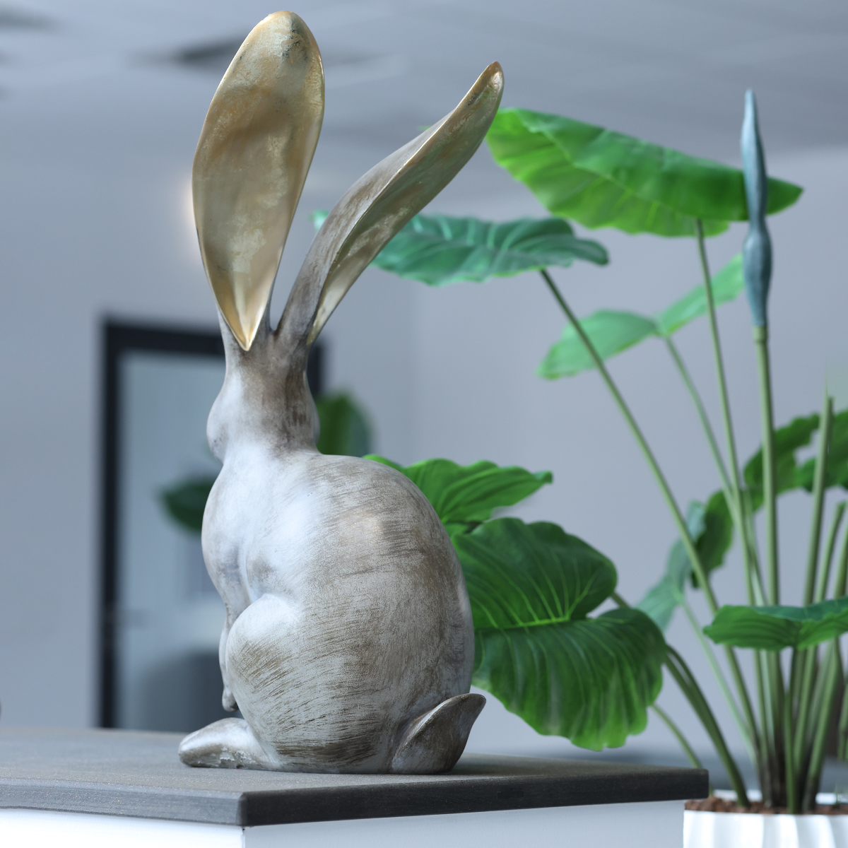 Prečo je táto figúrka králika nevyhnutnosťou na jar a Veľkú noc? Je to vďaka vynikajúcej kombinácii dizajnu, materiálu a funkčnosti. S rozmermi 52 cm králik magicky priťahuje pozornosť bez toho, aby bol rušivý. Zlaté, zvnútra sa trblietavé uši mu dodávajú tú jedinečnosť – ideálne na vytvorenie luxusnej atmosféry. Materiál Polystone je tiež robustný a odolný voči poveternostným vplyvom, vďaka čomu je králik vhodný nielen na vnútorné použitie, ale aj na balkóny alebo do záhrad.