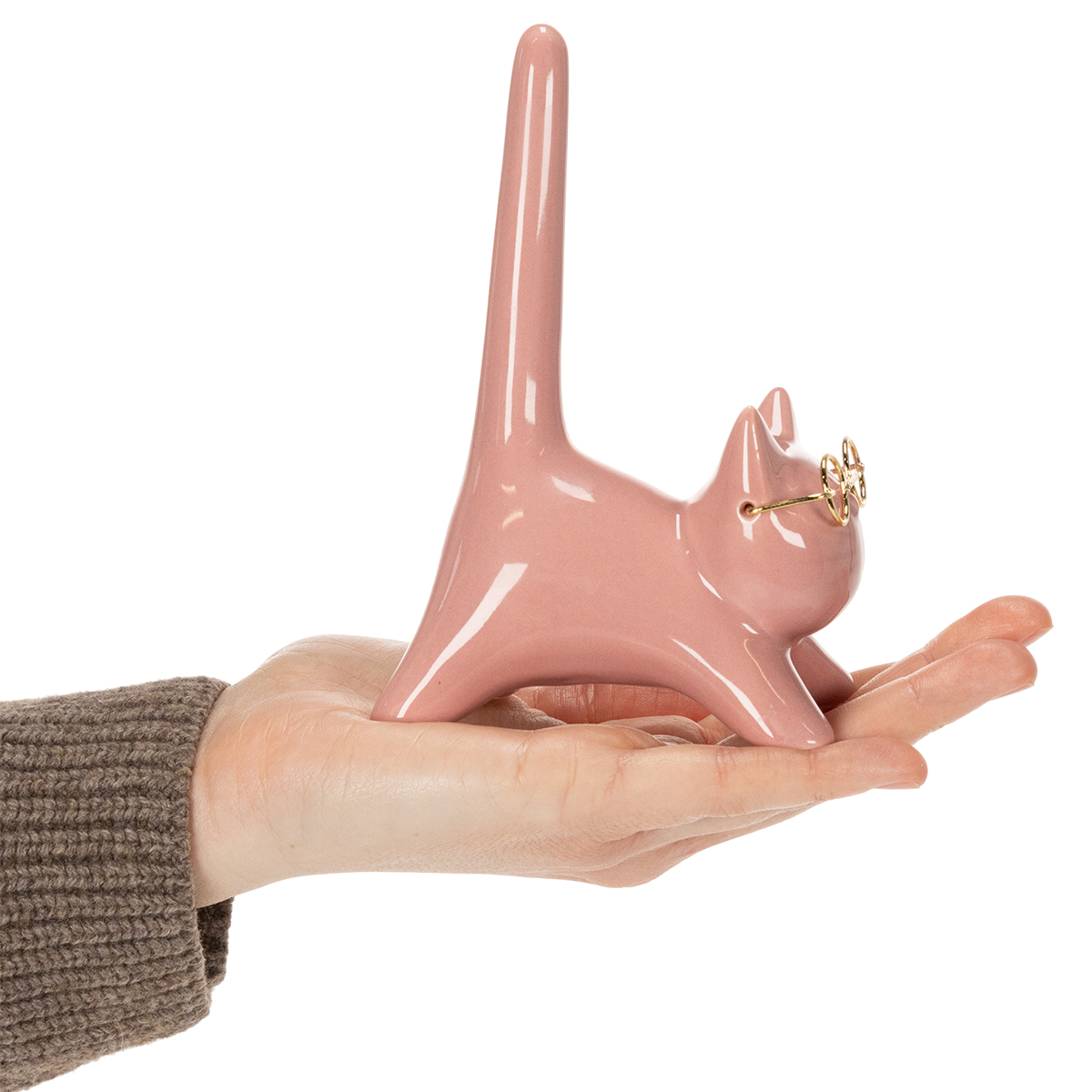 Kto hovorí, že váš domov nemôže byť malým umeleckým dielom? Táto pôvabná ružová figúrka mačky dodá každej miestnosti špeciálny nádych! Táto dekoratívna figúrka mačky zaujme svojím láskyplným remeselným spracovaním a moderným vzhľadom. Či už je na nočnom stolíku, poličke v kúpeľni alebo ako ústredný prvok jarného prestierania, zaručene upúta pozornosť. Je ideálna pre tých, ktorí oceňujú štýlové keramické sochy, a spája praktickosť s estetickou eleganciou. Chcete mať svoje obľúbené šperky poruke? Žiadny problém! Elegantný, nahor zahnutý chvost figúrky ponúka priestor na prstene alebo iné drobné doplnky. Jednoducho šikovné a krásne!