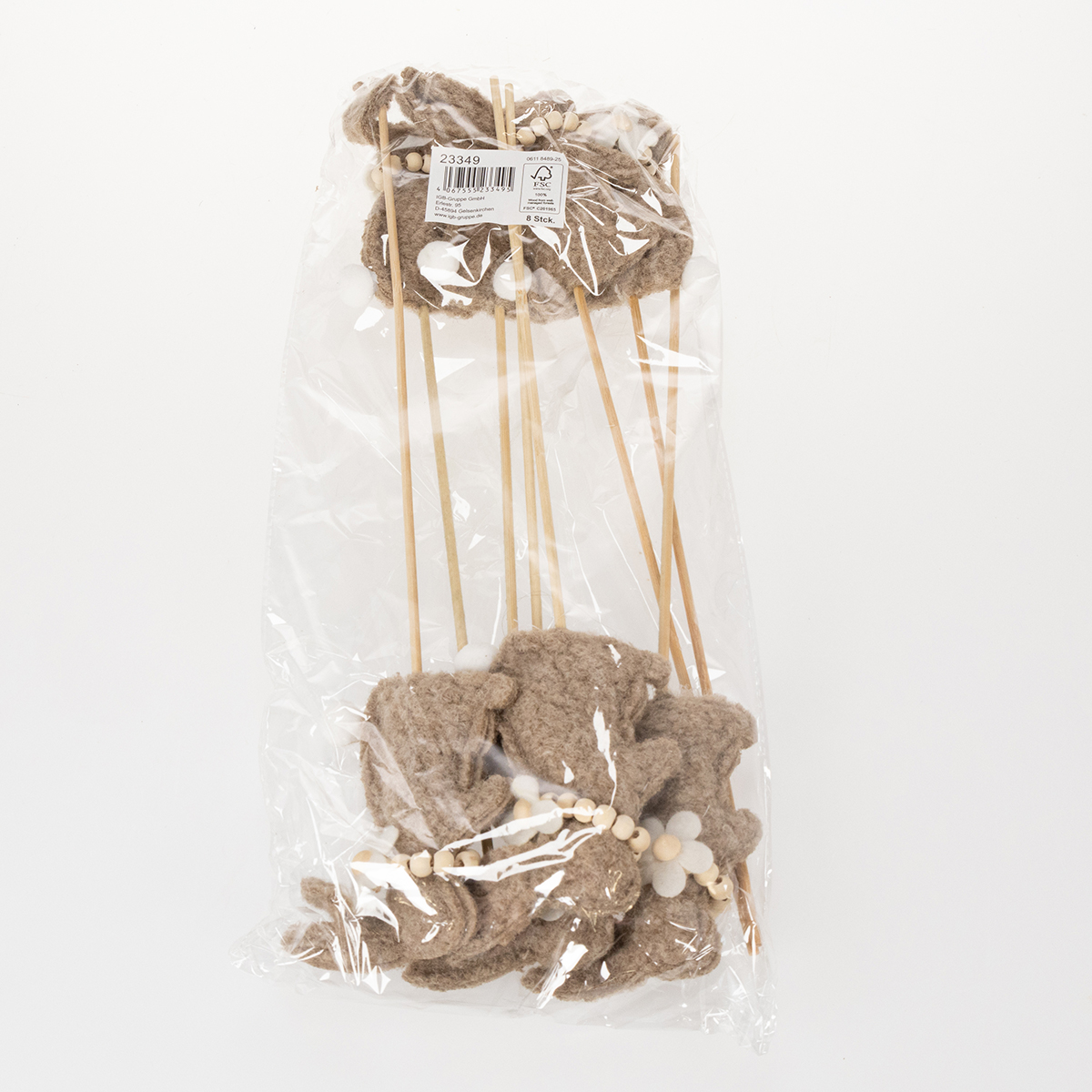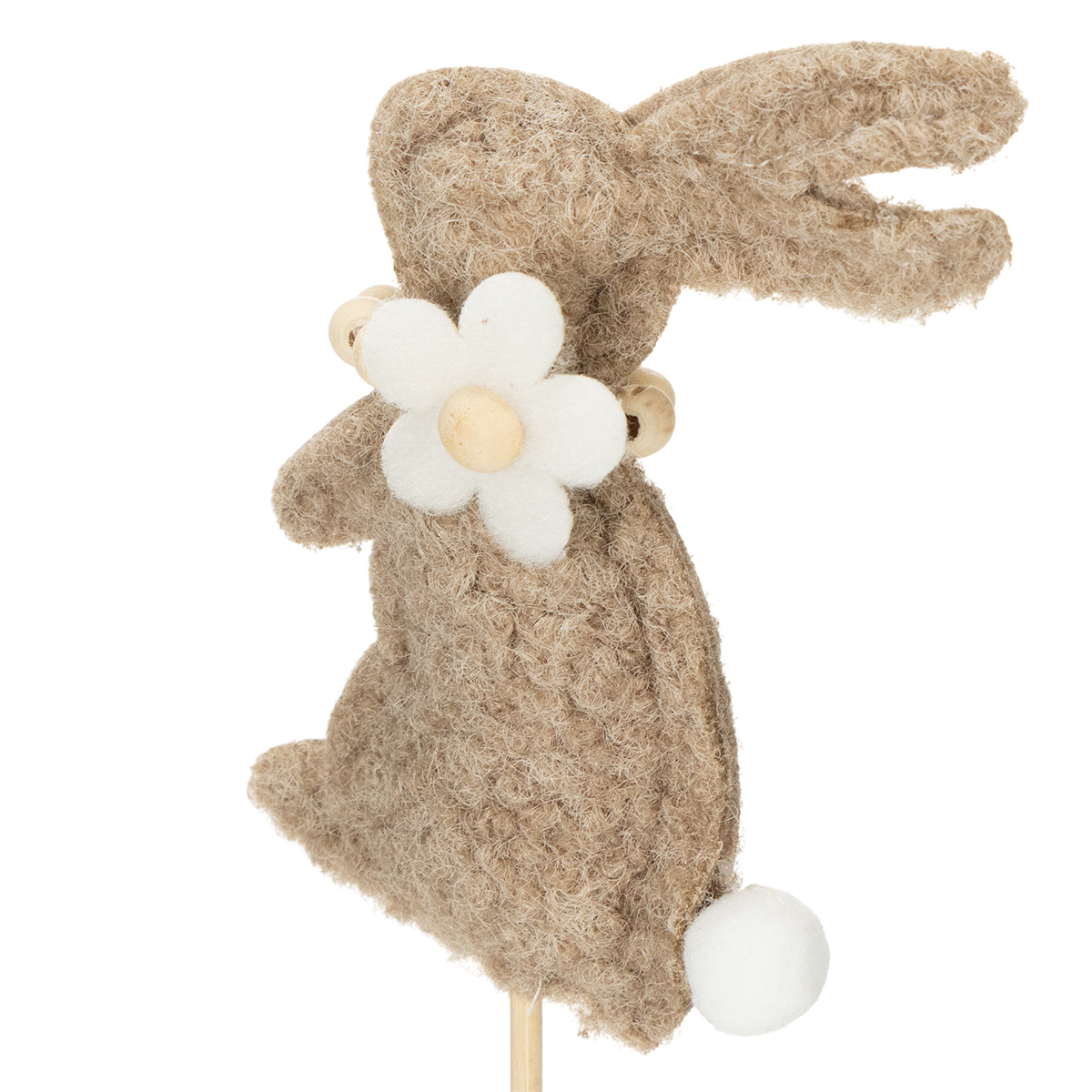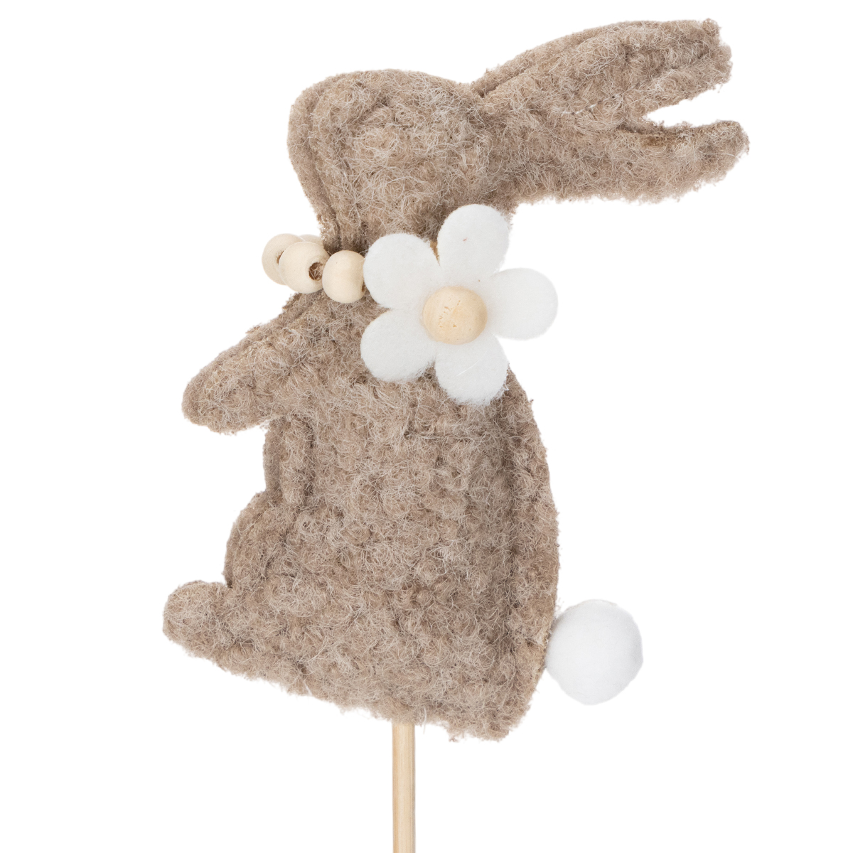 Táto veľkonočná dekorácia v tvare zajačika je skutočným vrcholom pre kreatívnych nadšencov dekorovania. Figúrky sú vyrobené z vysoko kvalitnej plsti v teplom hnedom odtieni, ktorý vyžaruje prirodzenosť a útulnosť. Očarujúce detaily, ako je jemný kvietok a malý nadýchaný chvostík, dodávajú zajačikom osobitý pôvab. Pevná palica uľahčuje aranžovanie zajačikmi do váz, kvetináčov alebo kvetinových aranžmánov. Tí, ktorí uprednostňujú minimalistický alebo škandinávsky dizajn, si zamilujú decentný, no zároveň výrazný štýl týchto figúrok.