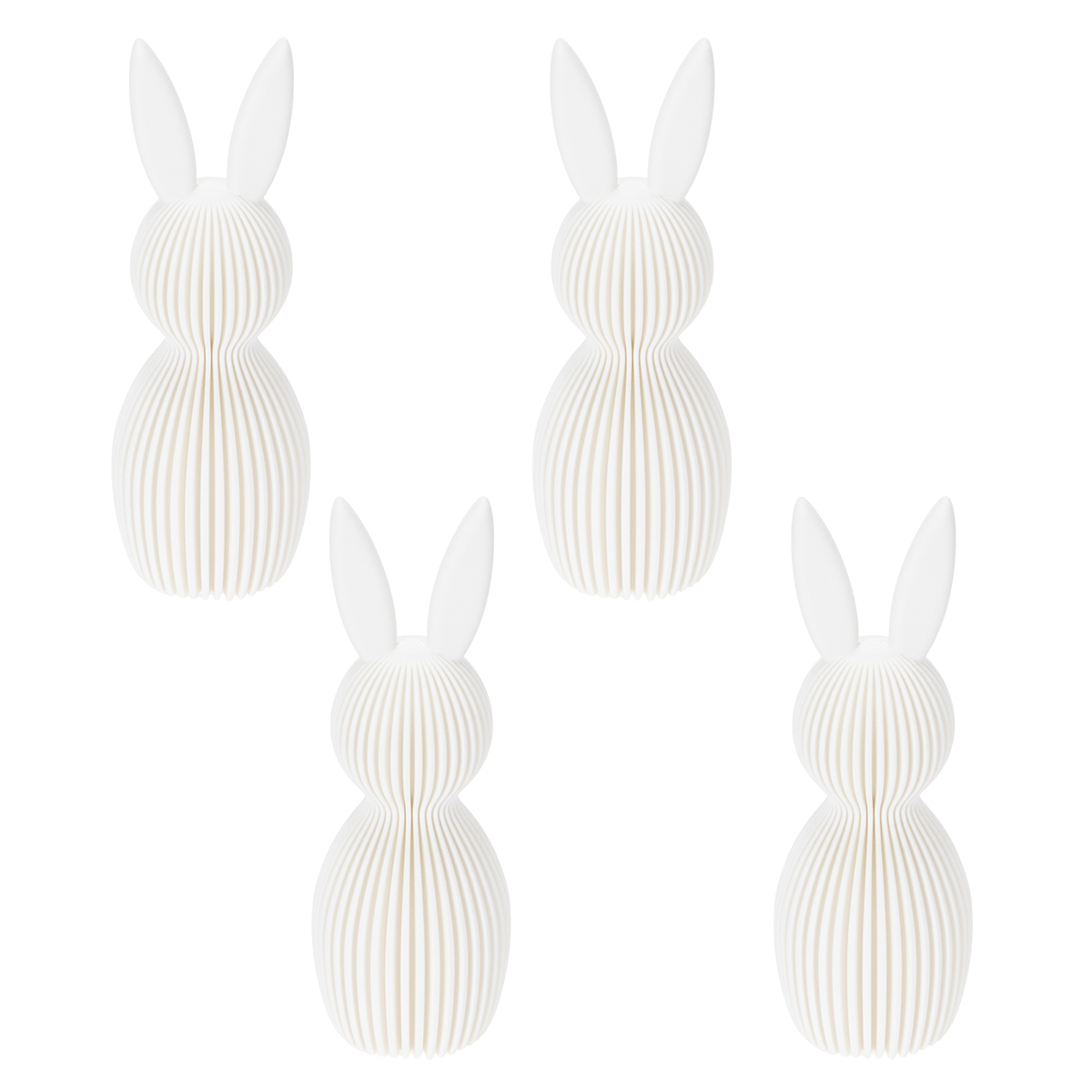 Či už ako súčasť veľkonočného prestierania alebo ako dekorácia na krbovej rímse, tieto figúrky sa dajú umiestniť a kombinovať kdekoľvek. Vyskúšajte ich ako doplnky na knižnici alebo do predsiene. Sú nielen skvelými spoločníkmi na Veľkú noc, ale aj perfektnými všestrannými doplnkami pre milovníkov jari a sviežosti. V kombinácii s inými bielymi dekoratívnymi predmetmi alebo prírodnými materiálmi, ako je drevo a sklo, vytvárajú jedinečný efekt. Pre decentnejší vzhľad sa zajačiky dajú použiť aj samostatne – ako malé, ale elegantné pútače pozornosti.