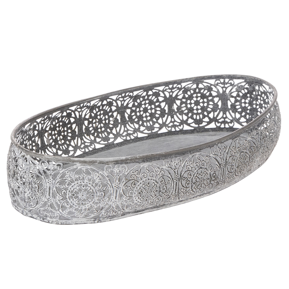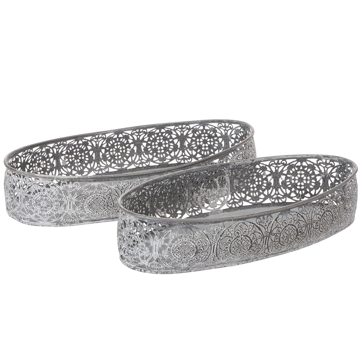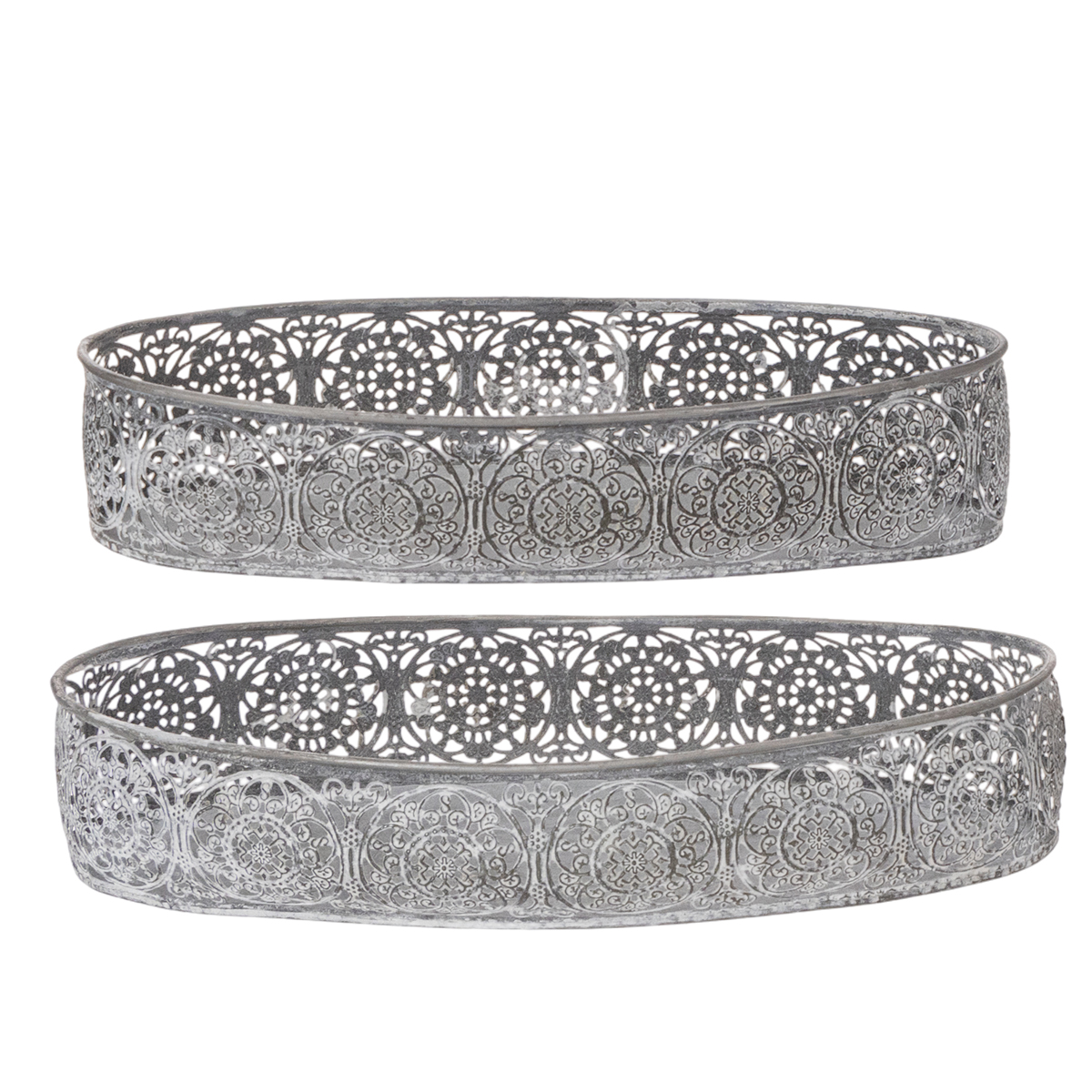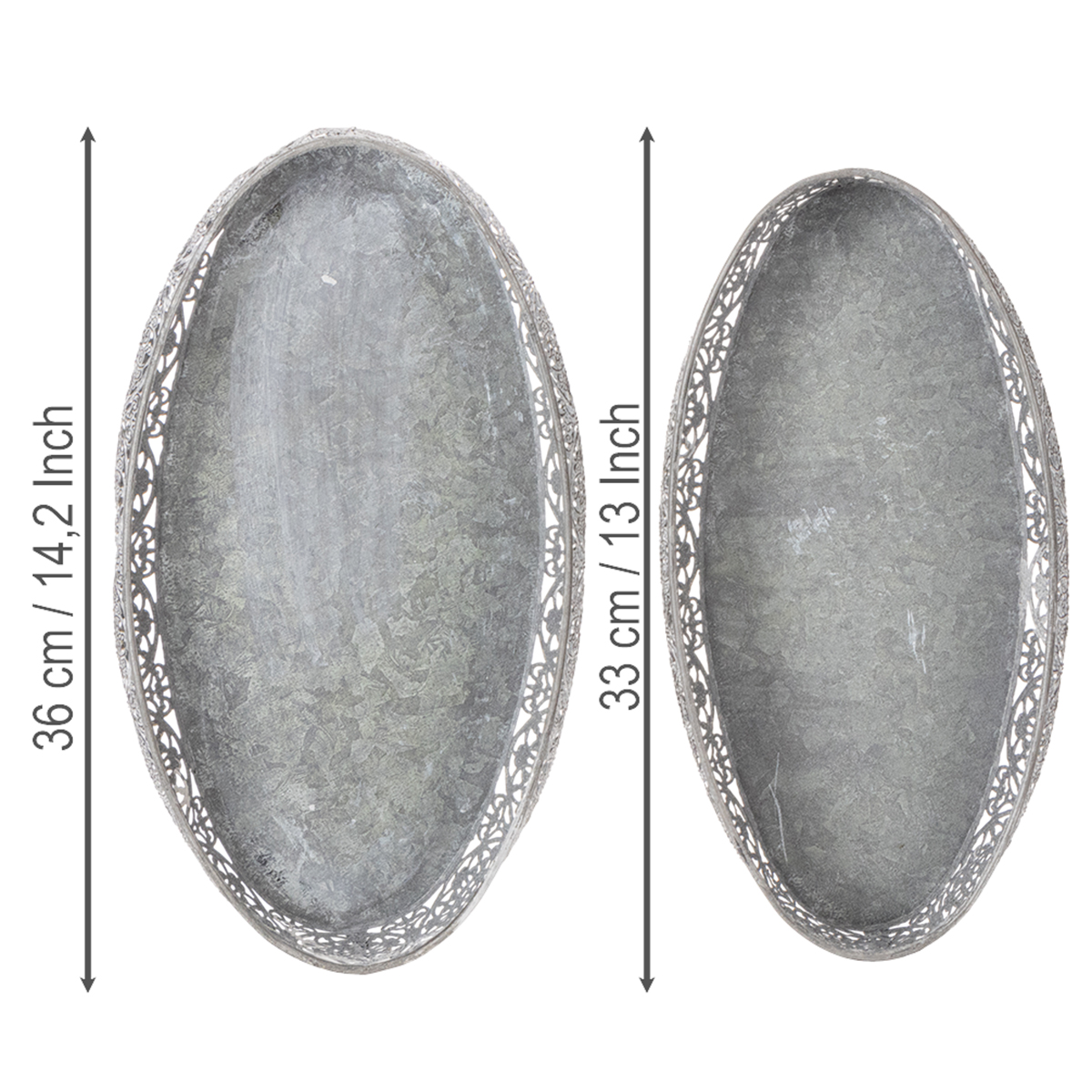 Dekoratívna kovová miska, sivý vzor, oválna, D36 cm/33,5 cm, sada 2 kusov