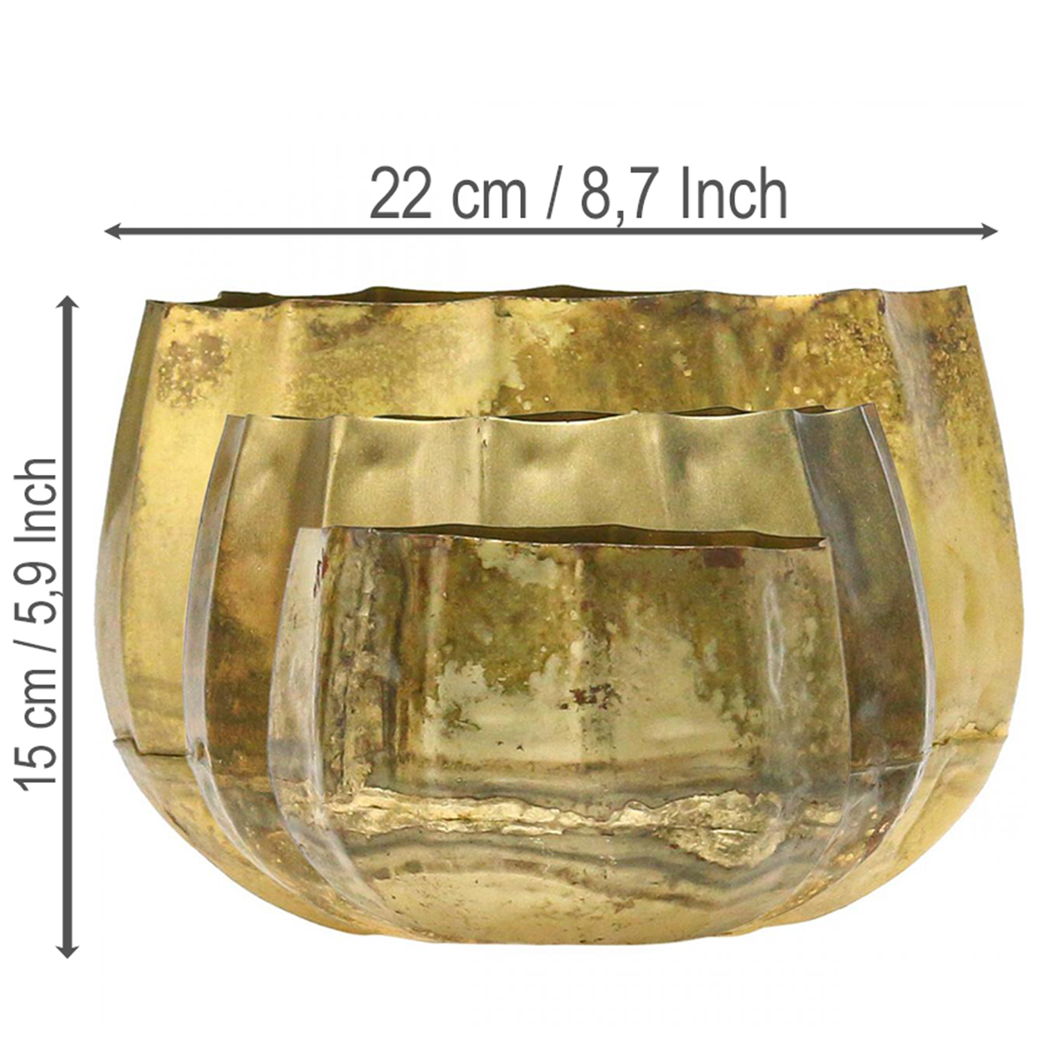 Prezentujte svoje kvetinové umelecké diela obzvlášť elegantným spôsobom s ozdobnou miskou z mosadze. Mosadzné nádoby dostanete ako súpravu s tromi rôznymi veľkosťami.