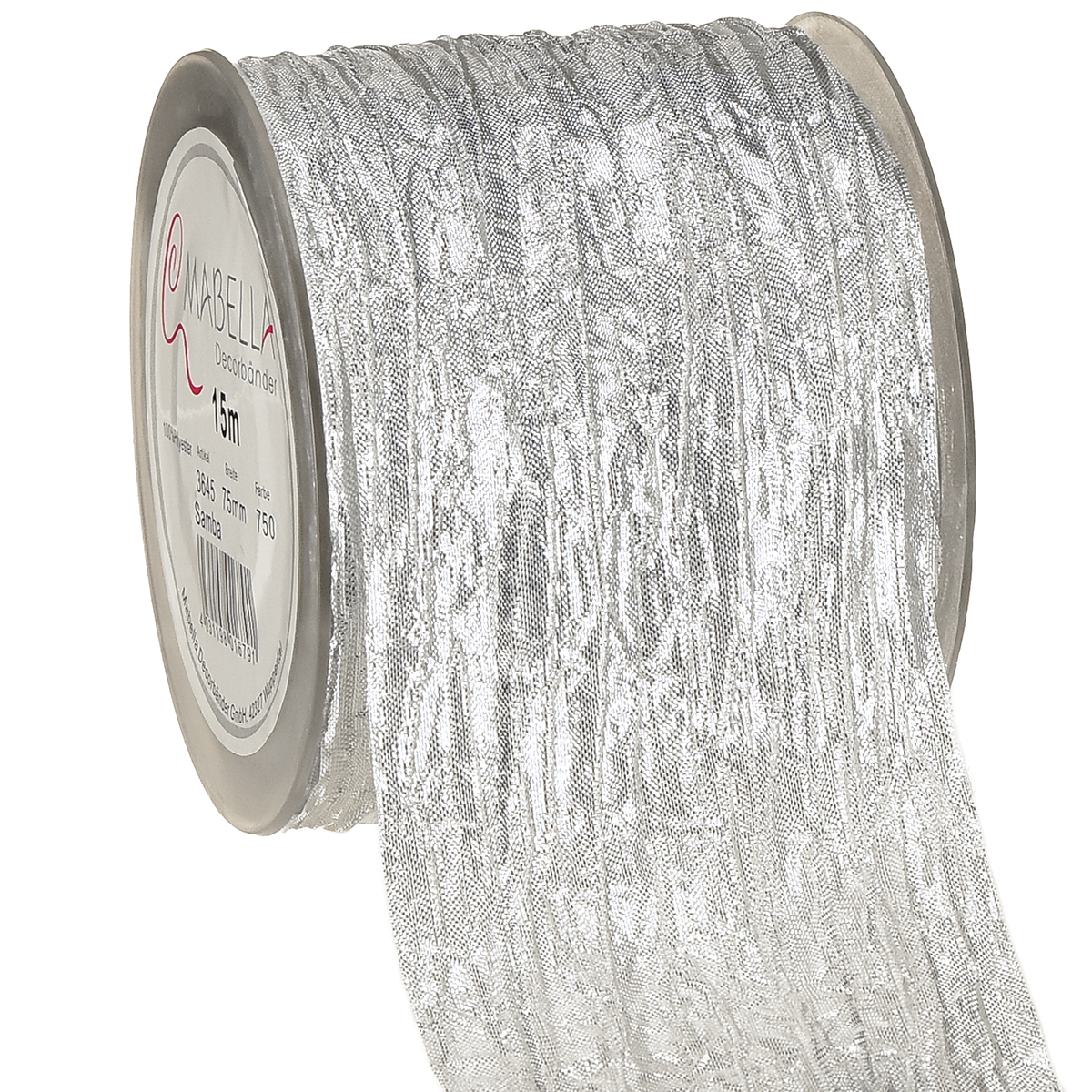 Dekoratívna stuha, darčeková stuha, stolová stuha, strieborná, svetlo 75mm 15m