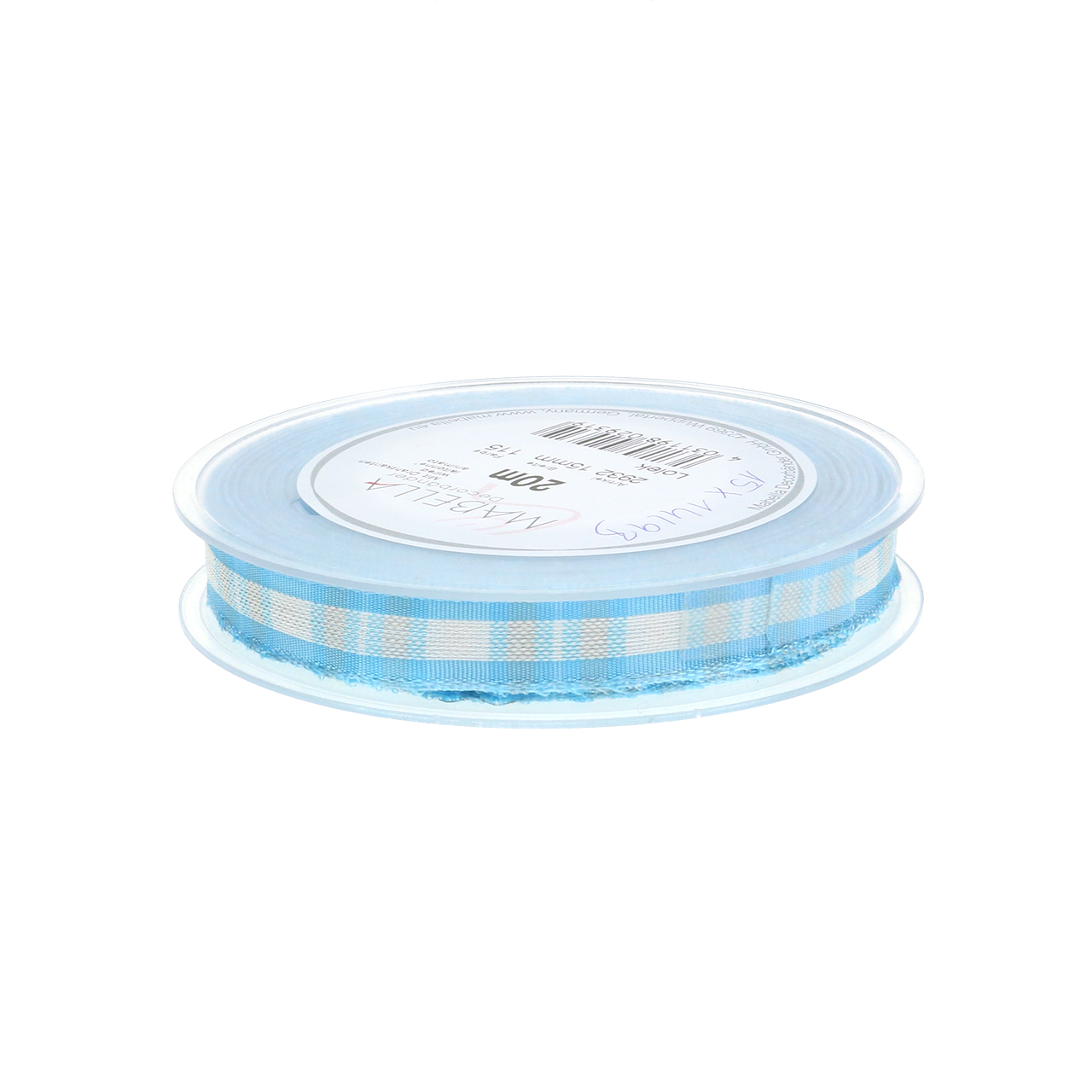 Názov produktu: Dekoratívna stuha kockovaná s drôteným okrajom modrá 15 mm D20 m