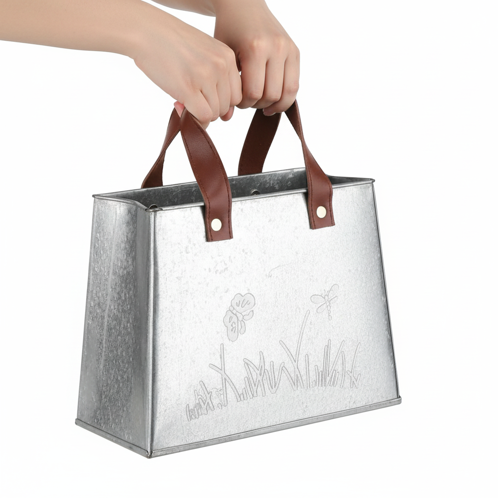 Dekoratívna kovová taška: štýlové kvetináče pre váš domov