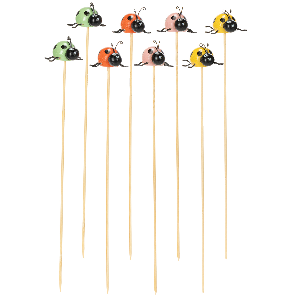 Tieto figúrky lienok sú skutočným vrcholom každého kvetinového aranžmánu! Figúrky sú vyrobené z pevného kovu a vybavené praktickými drevenými paličkami, takže sa dajú ľahko zapichnúť do pôdy, machu alebo peny. Materiál je pevný, vďaka čomu bude dekorácia dlho prinášať radosť, a to aj pri častom používaní. Lienky sú prepracované do detailov. Od ich očarujúcich čiernobielych očí až po farebné telá prinášajú do vašich letných dekorácií žiarivú sviežosť! Farby vytvárajú harmonický kontrast so zelenými rastlinami a perfektne sa hodia k farebným jarným kvetom.