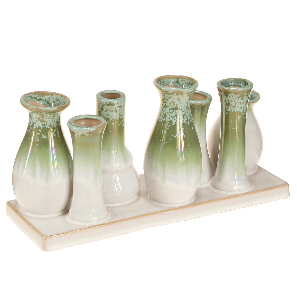 - Sada 7 dekoratívnych keramických váz na pevnom podnose