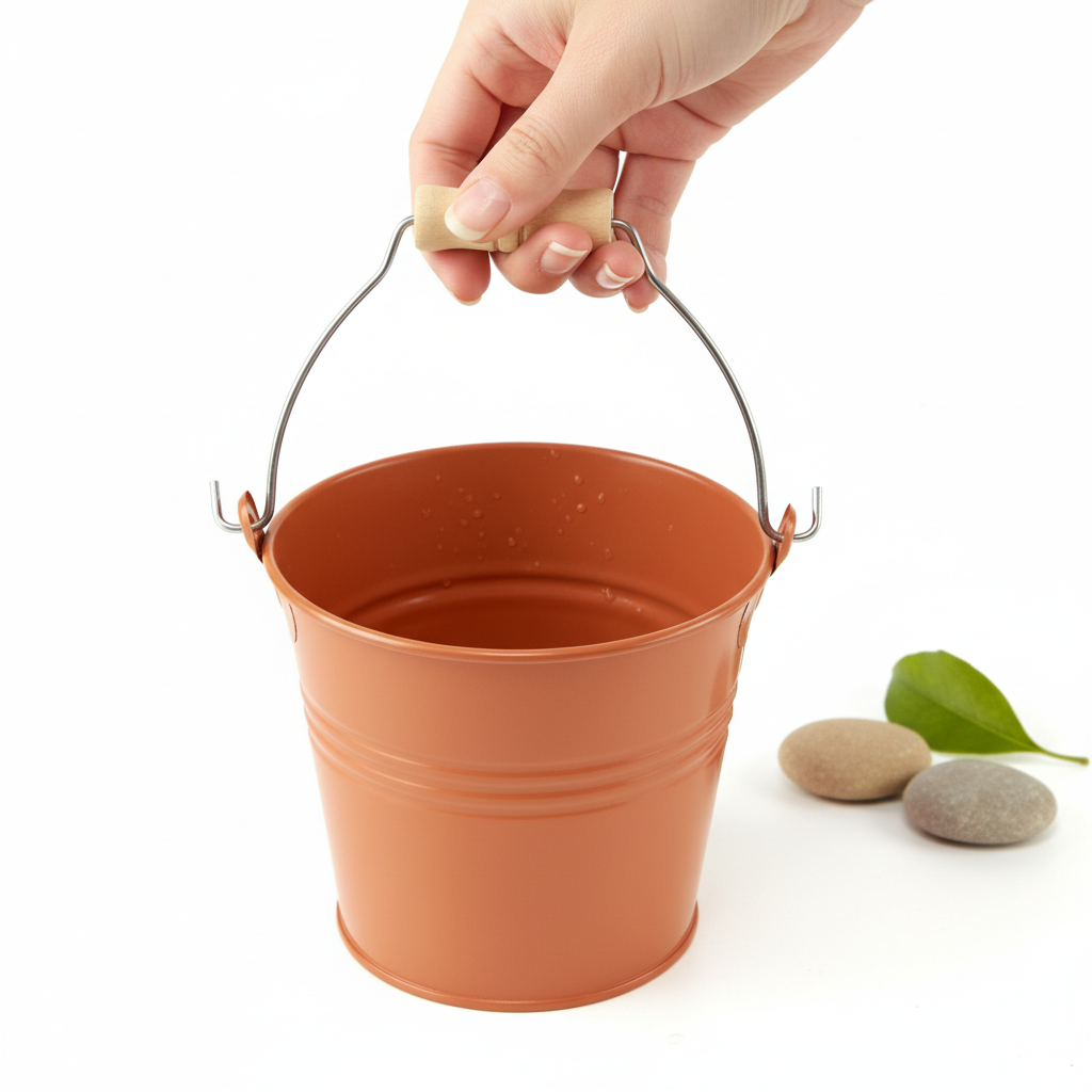 Okrem klasického tvaru má vedro pohyblivú rukoväť, na ktorú je ako zvýraznenie pripevnená neošetrená drevená rukoväť. To dáva dekoratívnemu kvetináču krásny vintage vzhľad, ktorý sa harmonicky hodí kamkoľvek.