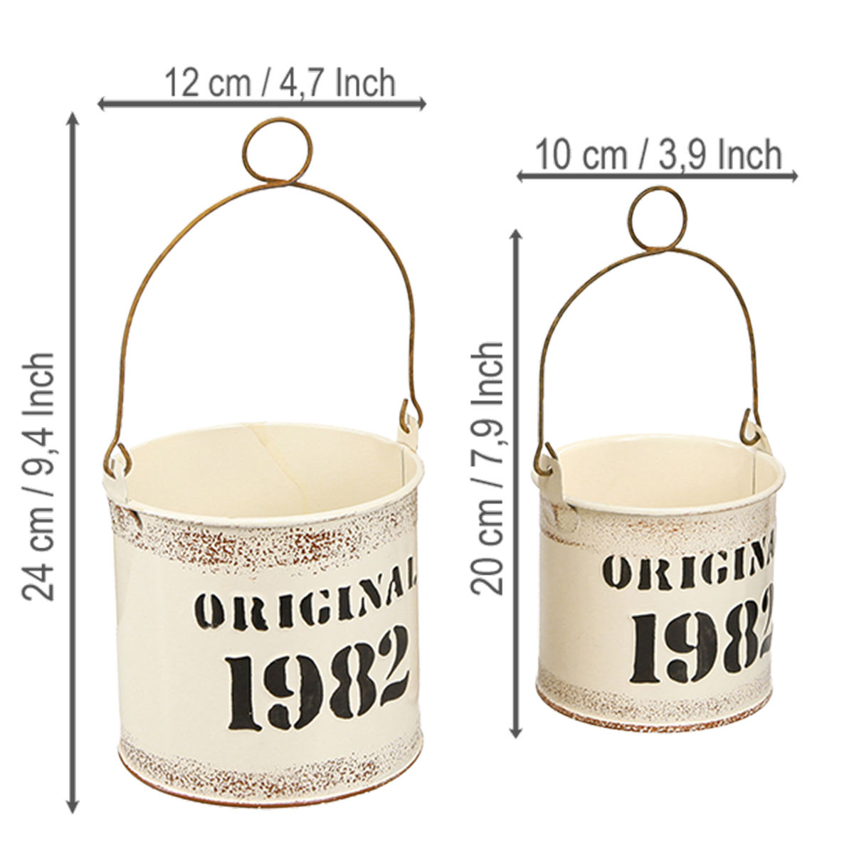 Dekoratívne vedro s rúčkou „Original 1982“ krémové Ø12/10cm 2×2-dielna sada
