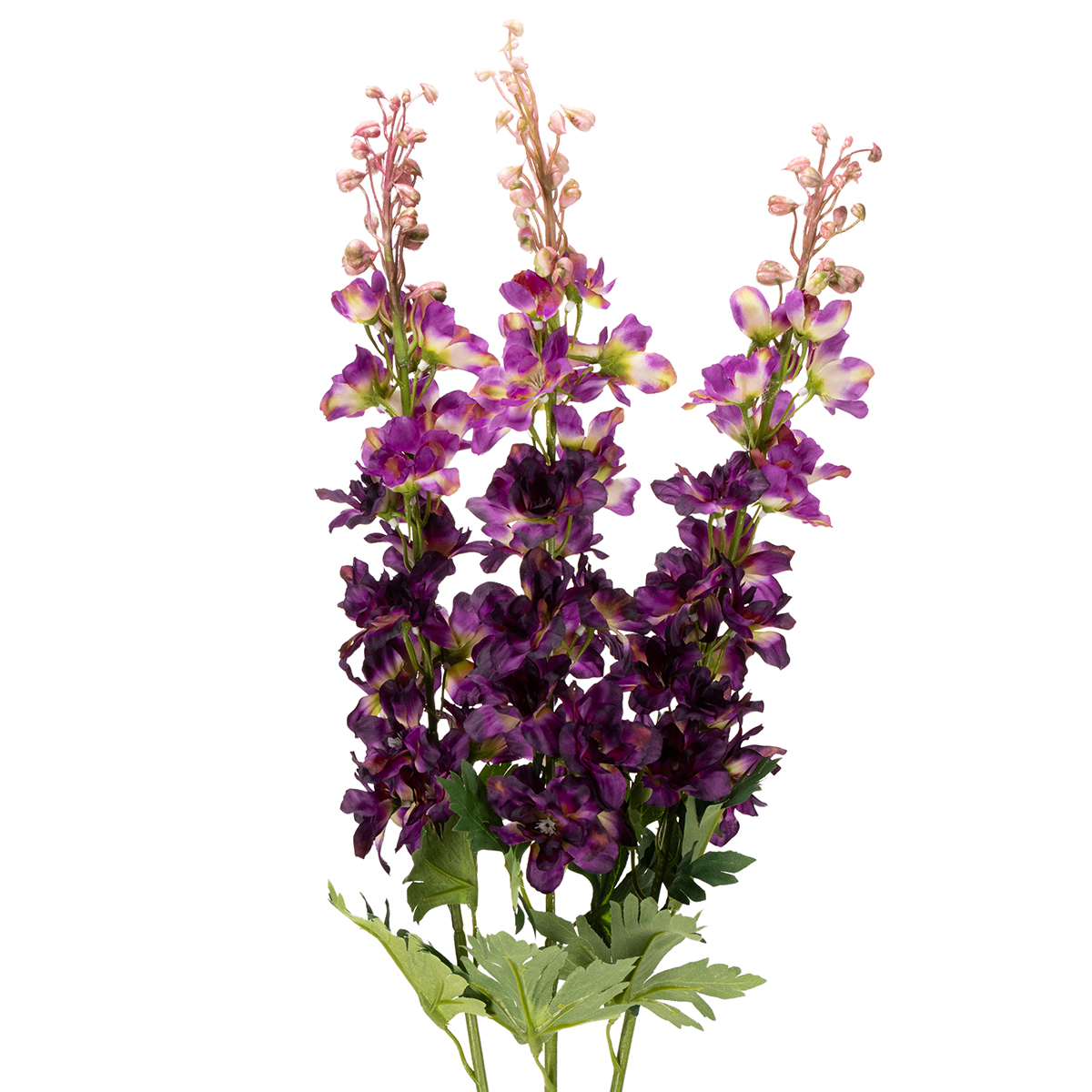 Tieto fialové umelé kvety delfínií zaujmú svojím realistickým dizajnom: od jemných kvetov až po zelené listy, všetko vyzerá klamlivo reálne. Sú tiež úžasne všestranné – nielenže skrášlia každú miestnosť, ale vytvoria aj slávnostnú atmosféru na oslavy, ako sú svadby alebo narodeniny. Každý, kto rád zdobenie, si zamiluje tieto vysoko kvalitné umelé kvety. S dĺžkou 79 cm sa dajú krásne kombinovať s inými dekoratívnymi prvkami alebo vystaviť ako samostatný kus.