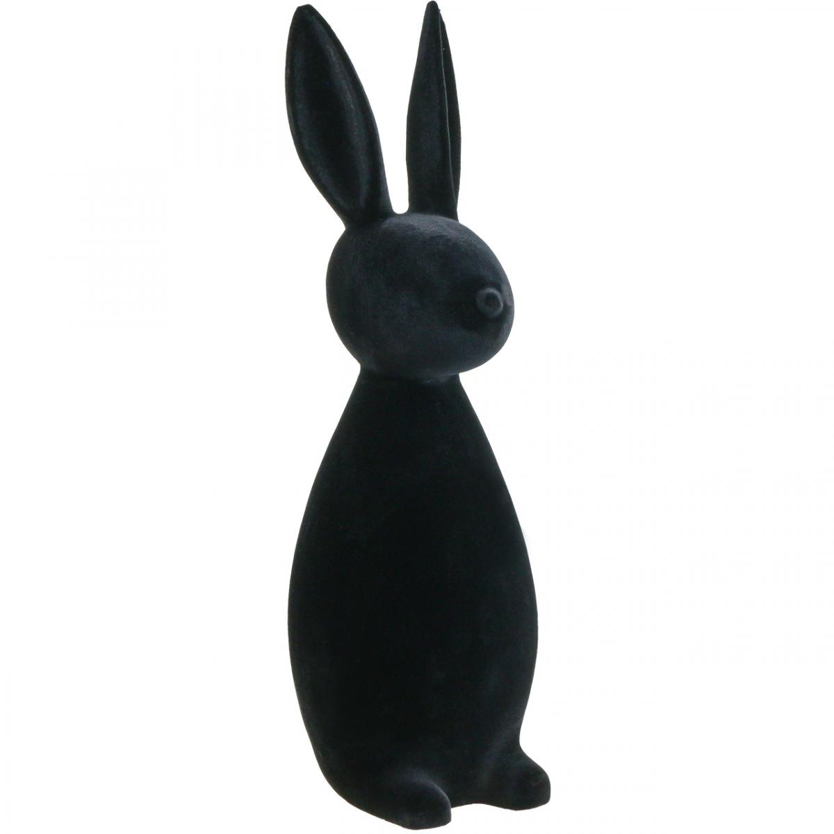 Mäkká čierna umelá kožušina a jednoduchý, no moderný dizajn dodávajú králikovi obzvlášť elegantný vzhľad. Vynikajú detaily ako dlhé králičie uši, malý nos, labky a chvost.