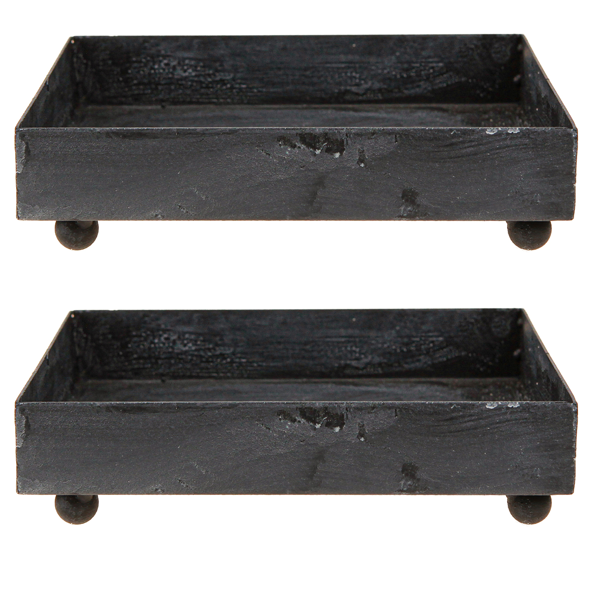 Dekoratívny kovový podnos čiernosivý praný 15×15cm 2ks