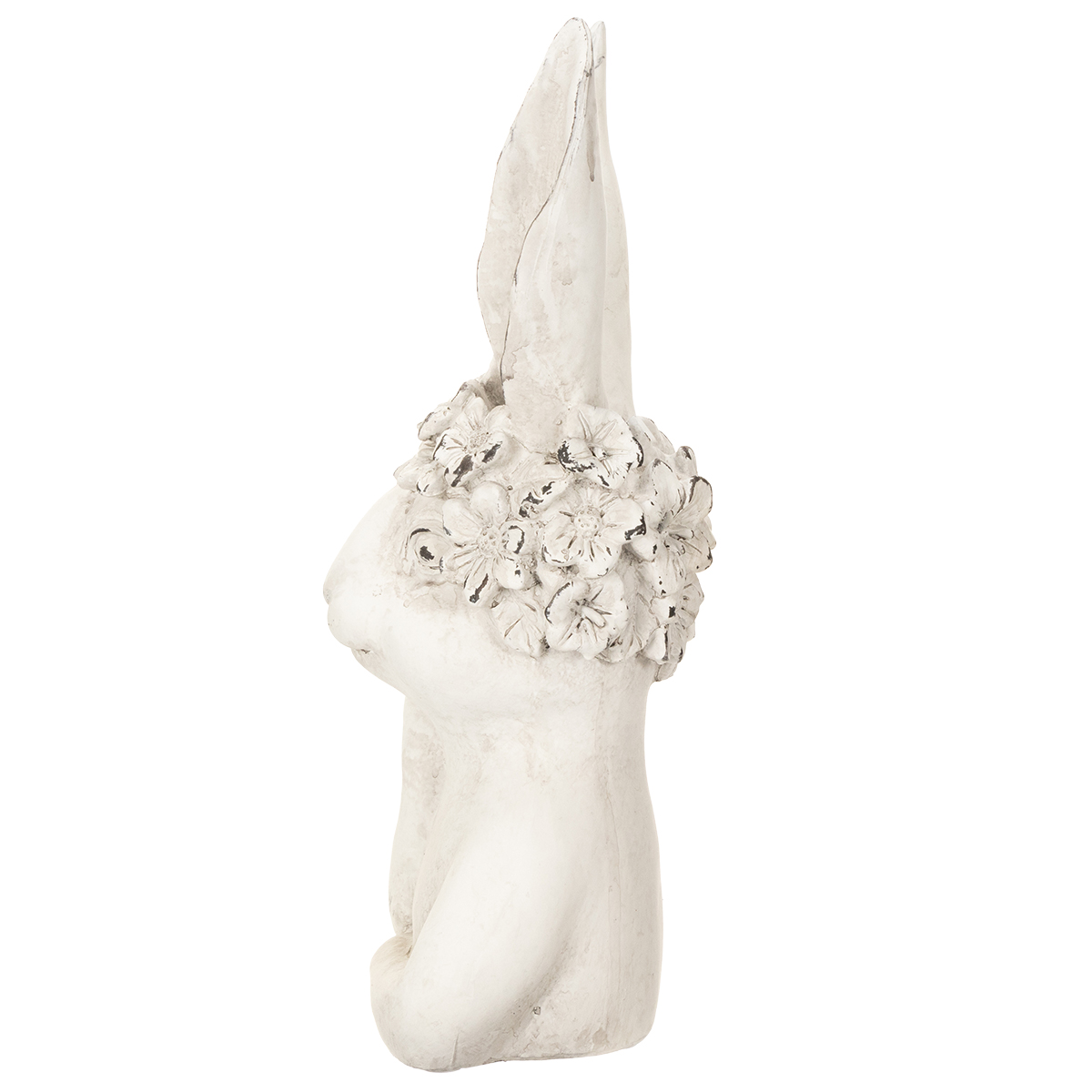 Náš dekoratívny králik zaujme harmonickou súhrou decentnej elegancie a jemných detailov. Výrazná póza s podopierajúcou rukou a hravý kvetinový veniec na hlave dodávajú tejto figúrke jedinečnú osobnosť. Príjemná sivá farba ho robí všestranným, zatiaľ čo jeho vysoko kvalitný keramický materiál zaisťuje stabilitu a odolnosť. Je vhodný do vnútorných aj krytých vonkajších priestorov.