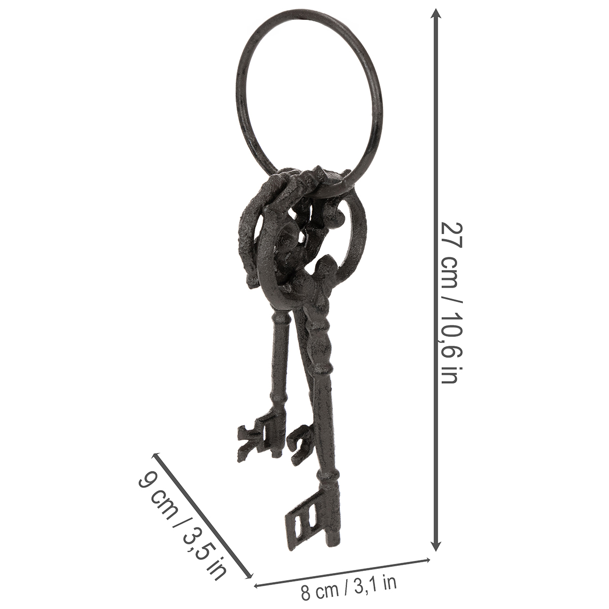 Teplá hnedá farba a vysoko kvalitná liatina dodávajú tejto kľúčenke rustikálny a autentický vzhľad. Či už sa používa samostatne alebo v kombinácii s inými nostalgickými dekoráciami, táto vintage kľúčenka sa perfektne hodí do vidieckeho štýlu, shabby chic alebo priemyselného dizajnu. Popustite uzdu svojej kreativite a objavte jej mnohostranné využitie!