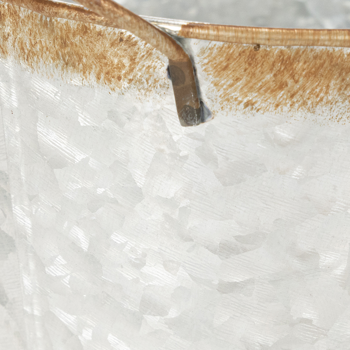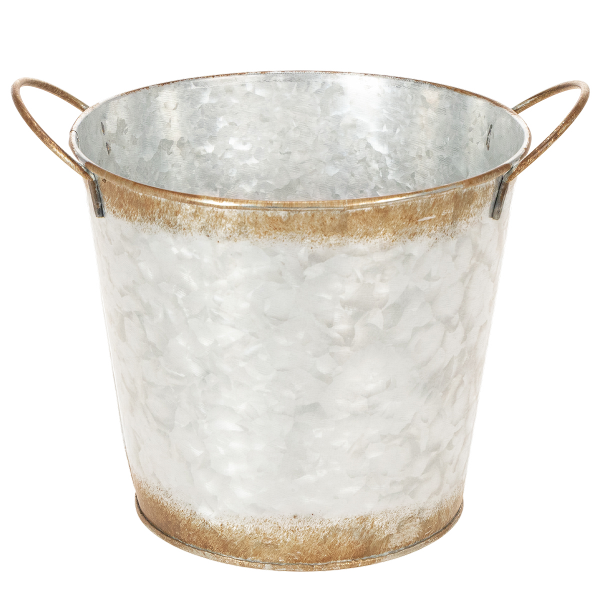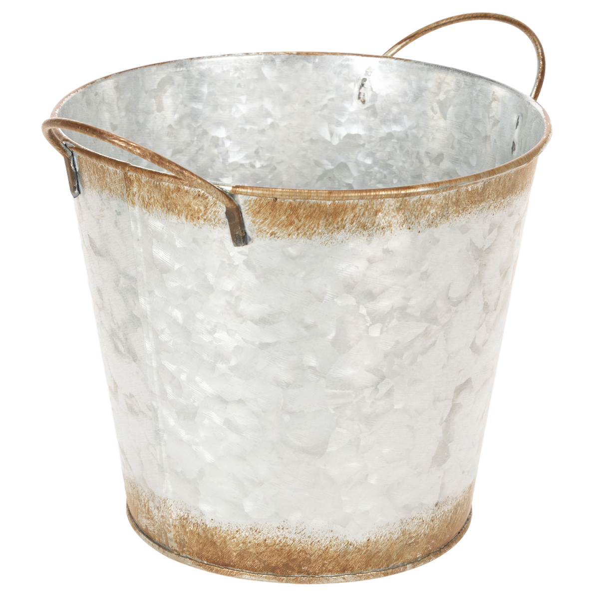 Dekoratívny kvetináč s rúčkami, vedro na kvetináče, kovová nádoba, strieborná, zvetraná oceľ, Ø17 cm V16,5 cm