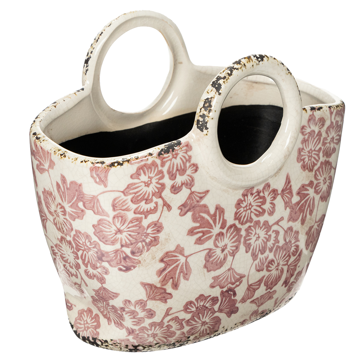Dekoratívny kvetináč s rúčkou, kvetinový, 21 cm
