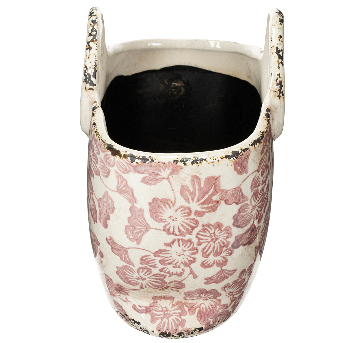 Vintage kvetináč s rúčkou v kvetinovom vzore