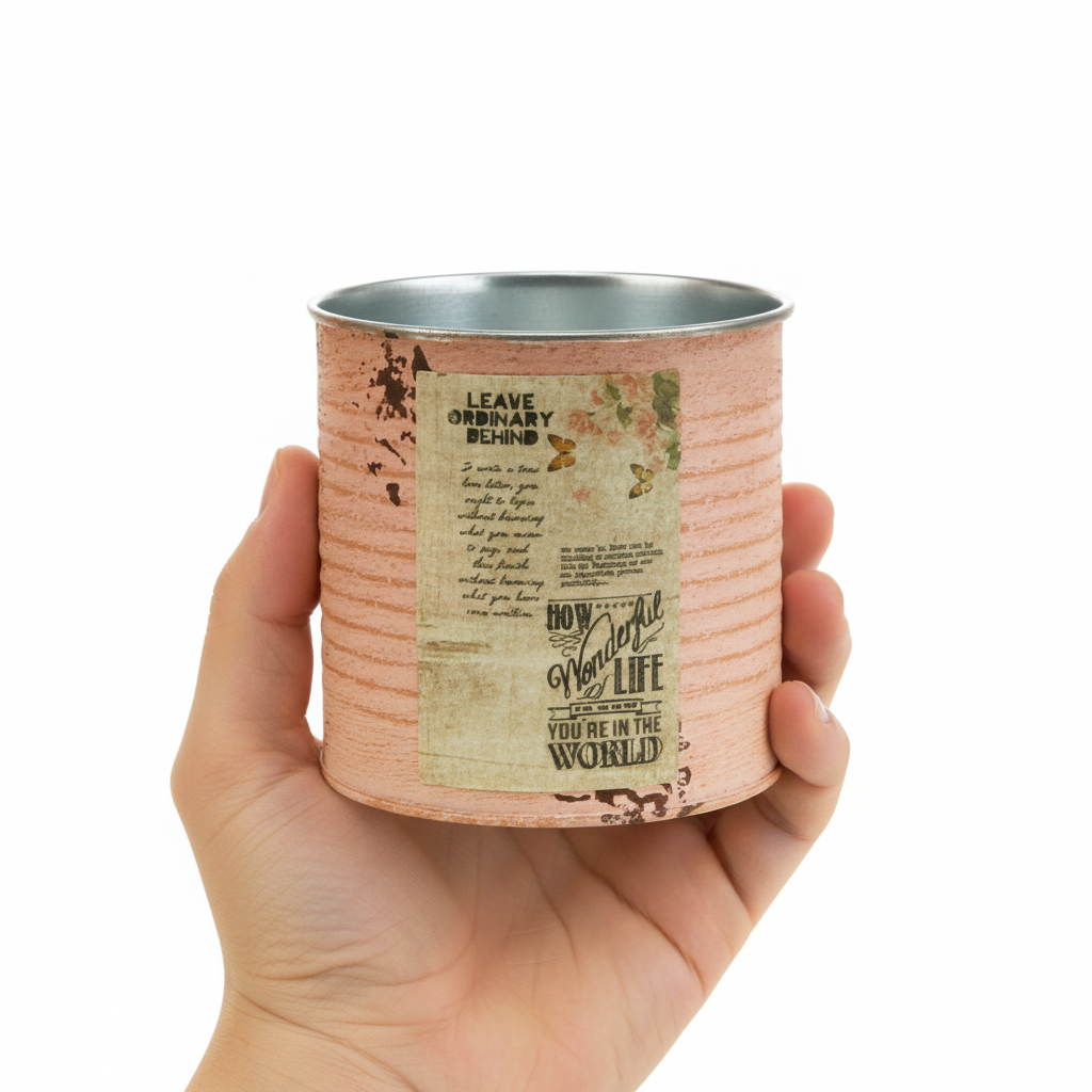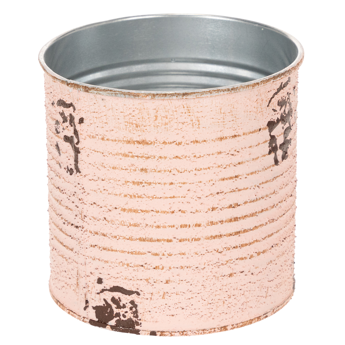 Dekoratívny kvetináč v plechovke lososový, kovový, letná dekorácia Ø11cm V10,5cm