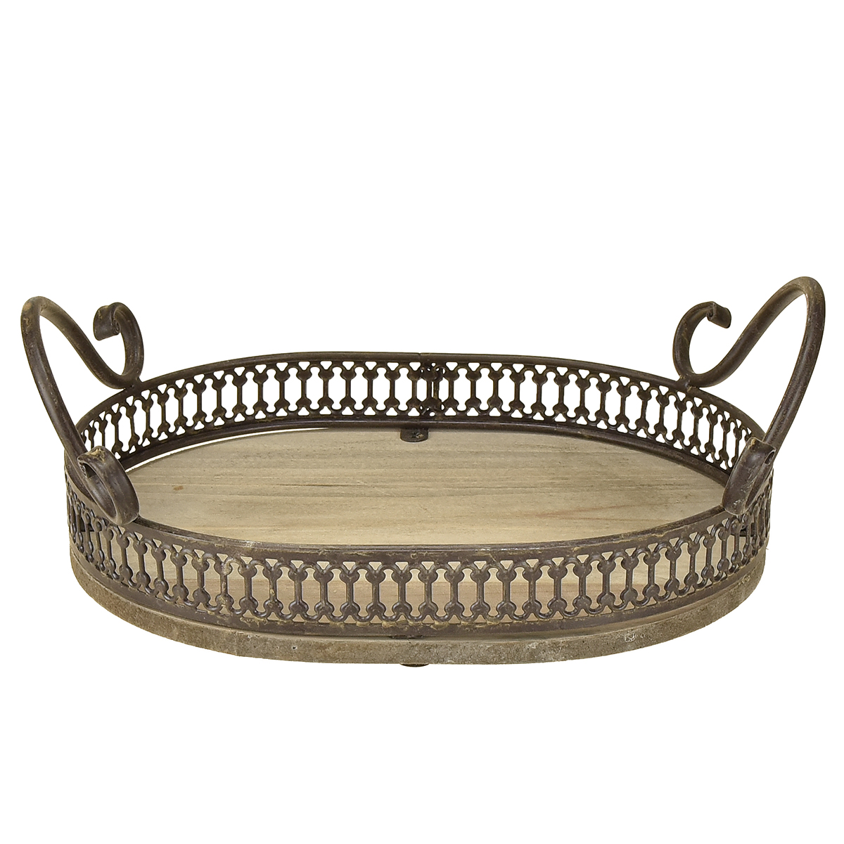 Hnedý a oválny dekoratívny podnos s rozmermi cca 23 x 17,5 x 7,5 centimetra sa hodí takmer do každej obývačky, pretože dekoratívna drevená doska úžasne vylepší každú malú plochu. Stabilná doska má na spodnej strane 4 plastové kotúče, ktoré slúžia ako protišmyková ochrana. Kovové zábradlie je umne zdobené elegantnými kvetmi a 2 praktickými zakrivenými rúčkami, pomocou ktorých môžete ozdobný podnos bezpečne prepravovať.