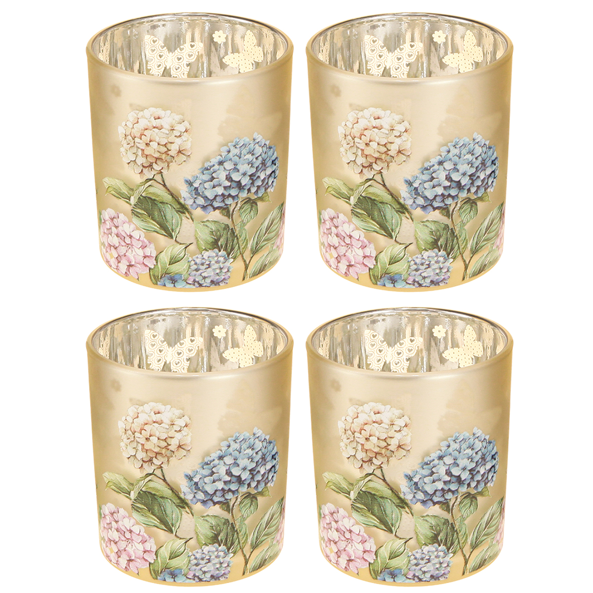 Dekoratívny sklenený lampión s kvetinovým vzorom pre štýlové bytové doplnky, 8 cm, 4 kusy.