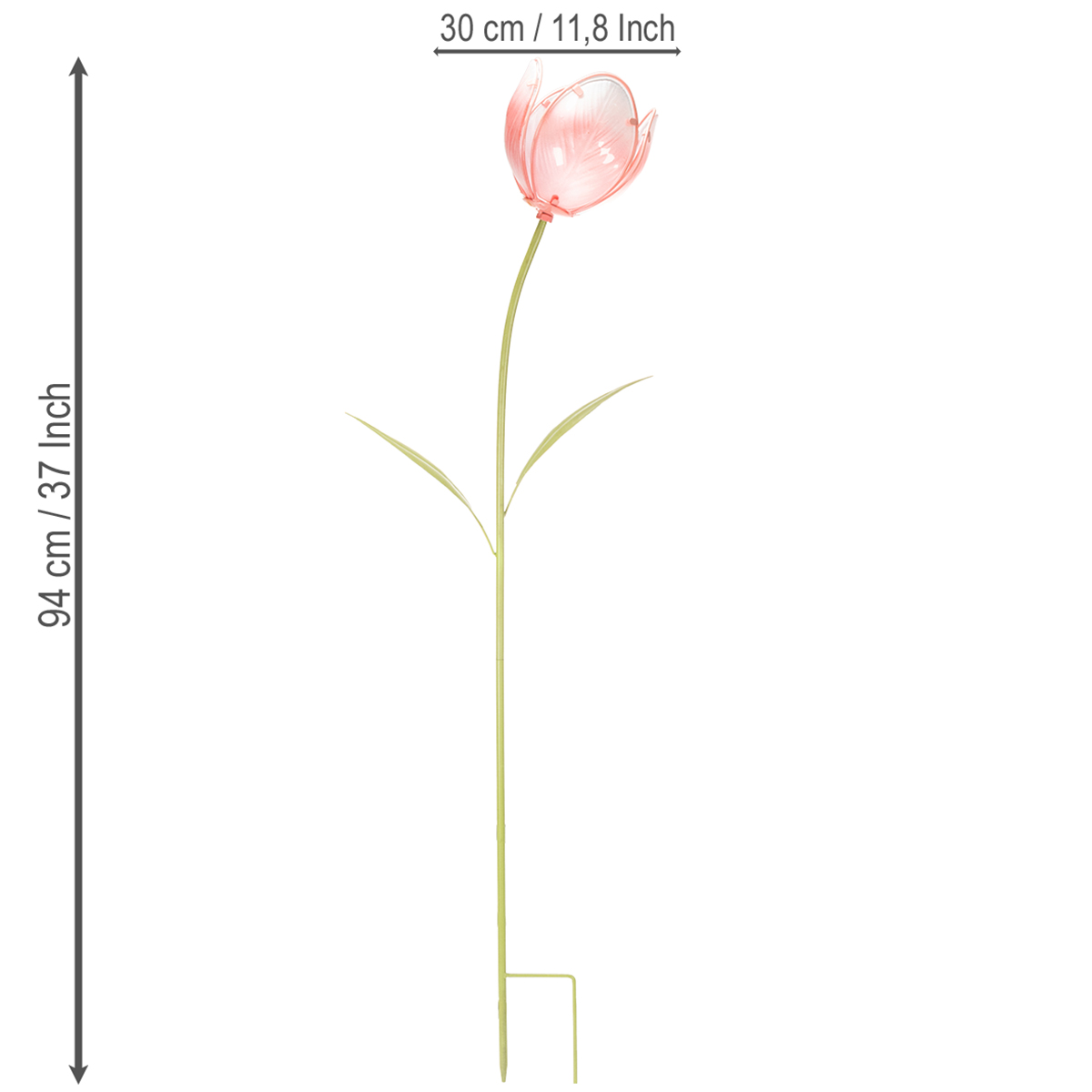 Hľadáte očarujúci ústredný bod pre váš kvetinový záhon alebo terasu? Potom sa pozrite na náš záhradný kôl v tvare krásneho tulipánu! Tento záhradný kôl s výškou 94 cm a veľkým ružovým skleneným kvetom okamžite vnesie eleganciu a farbu do vašich vonkajších priestorov. Je ideálny na vdýchnutie života kvetinovým záhonom alebo dodanie farebného nádychu balkónovým záhradám! Či už je váš štýl rustikálny, moderný alebo romantický – táto dekoratívna kvetina sa hodí kamkoľvek. Ručne vyrobený vzhľad z vysoko kvalitných materiálov ho robí nielen odolným voči poveternostným vplyvom, ale aj dlhotrvajúcim doplnkom, ktorý dodá vašej záhrade niečo výnimočné. Máte chuť na malú zmenu štýlu vo vašej záhrade? Vyskúšajte to!
