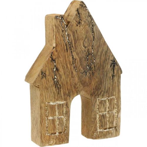 Silueta dekoratívneho dreveného domu zobrazuje šikmú strechu, z ktorej sa tiahne komín a predné dvere, ktoré sú znázornené vo forme výklenku. Dom má dve okná, ktorých obrysy boli vyrezané a obkreslené trblietkami. Zvláštnosťou tohto dreveného domu sú jemné žilky na povrchu dreva, ktoré boli vypracované špeciálnou technikou a následne vyplnené trblietkami.