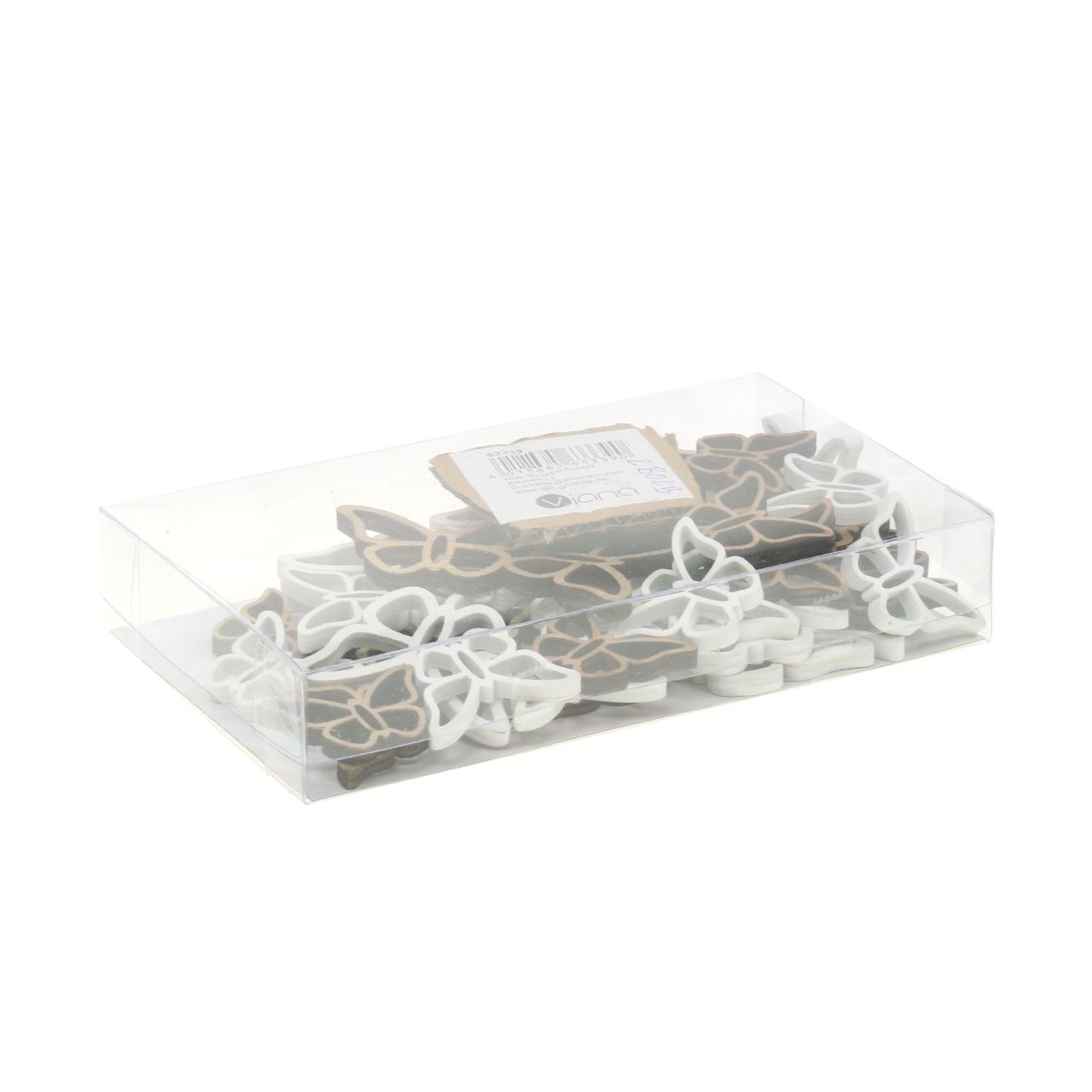Názov produktu: Drevený motýlik biely/prírodný 3cm - 4,5cm 48 ks