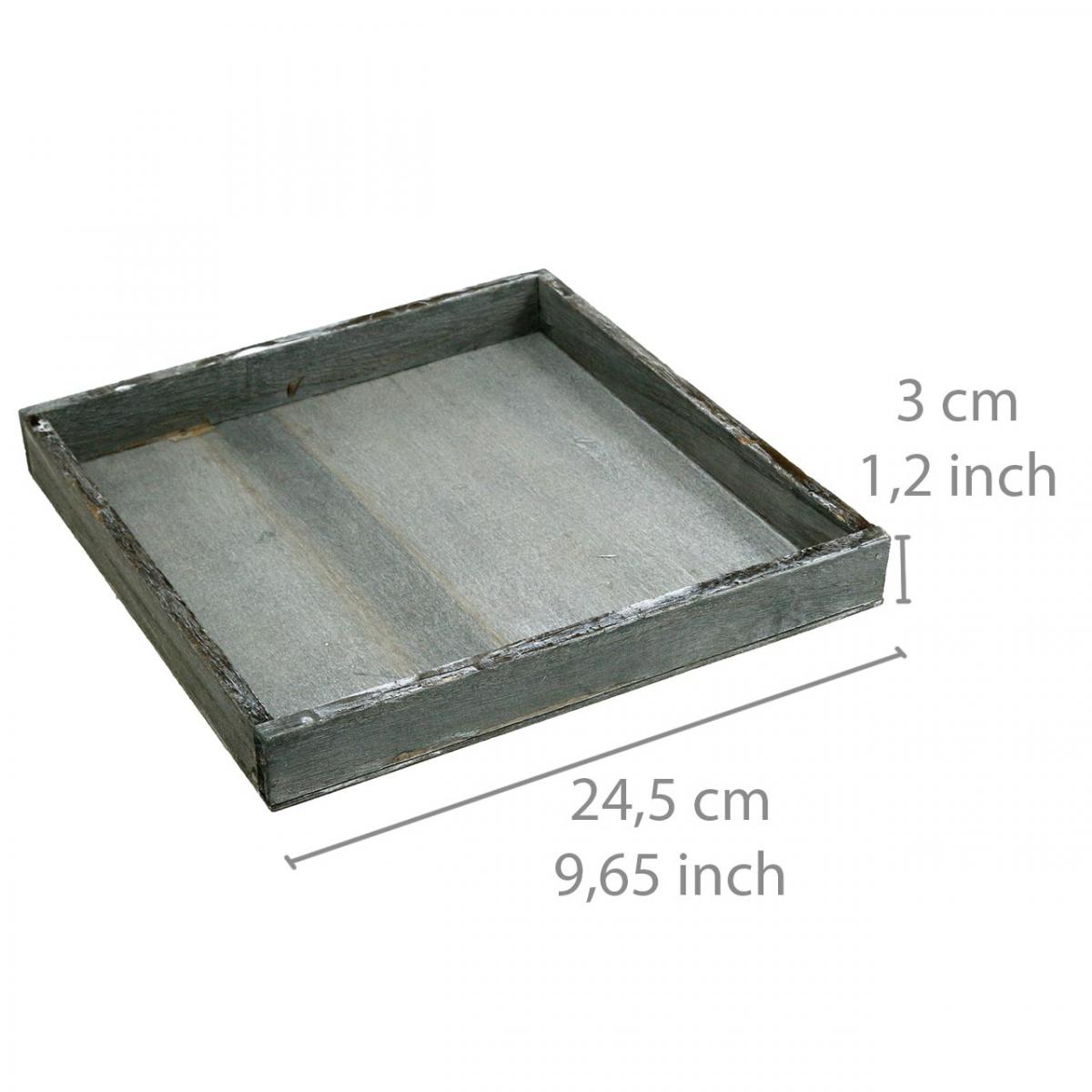 Názov produktu: Drevený štvorcový podnos sivý, biela stolová dekorácia shabby chic 24,5 × 24,5 cm 2 ks