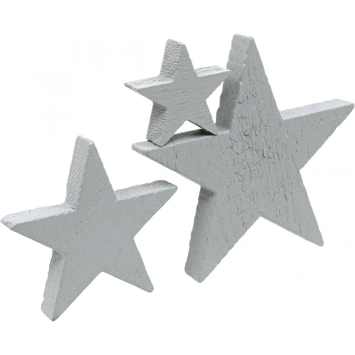 Drevená dekorácia hviezdy rozptylová dekorácia Vianočná šedá 3/5/7cm 29 ks