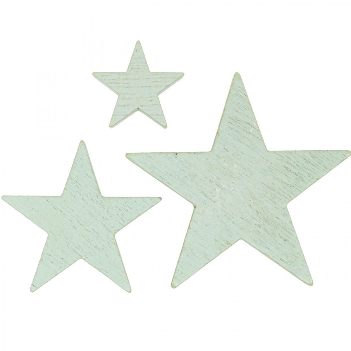 S touto drevenou dekoráciou hviezdy ste dobre vybavení na vianočné obdobie. Vianočnú roztrúsenú dekoráciu tvoria päťcípe svetlé hviezdy vo farbe mint.Rozmiestnite dekoračné hviezdy na stôl, komodu alebo pod vianočný stromček. Drevené hviezdičky vyzerajú všade skvele ako doplnková dekorácia.