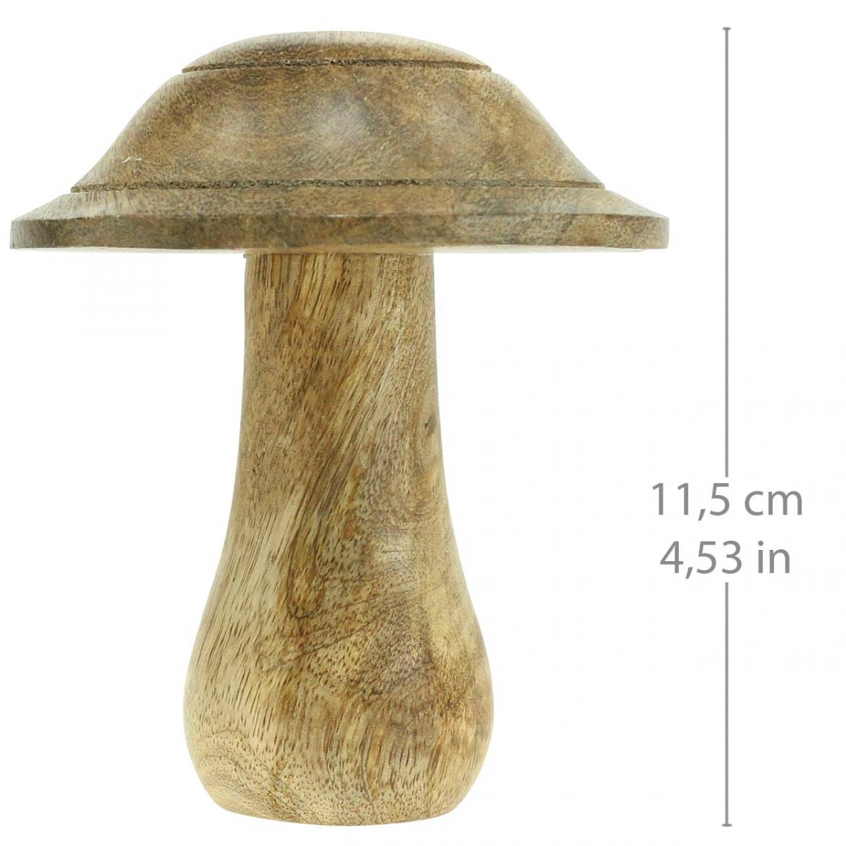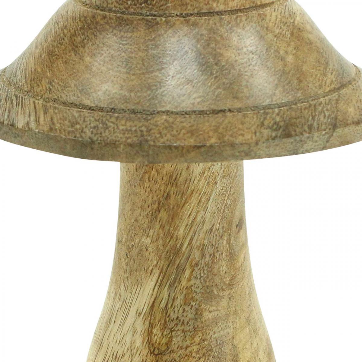 Mangové drevo je v tejto hubovej dekorácii prirodzené. Klobúčik hríbika je štruktúrovaný dvoma drážkami, čo znamená, že hríb môže byť na týchto miestach ozdobený napríklad farebným ozdobným drôtikom alebo páskou s knôtom. Stopka sa v spodnej časti rozširuje na charakteristickú hľuzu.
