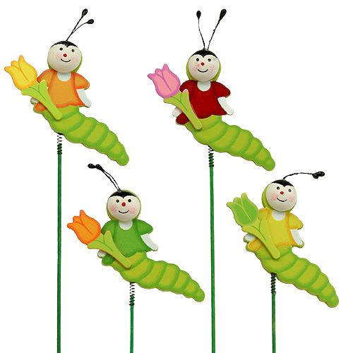 Vďaka pevnej drevenej tyči sa dajú ozdobné húsenice ľahko zapichnúť do zeminy a peny. Môžete tak nielen skrášliť kvetináče, kvetináče a izbové rastliny, ale aj s láskou vyšperkovať letný aranžmán. Kvetinové zátky sa obzvlášť dobre hodia k tulipánom, ale dajú sa použiť aj v záhrade na skrášlenie vašej záhrady. A ak pripravujete darček pre oslávenca, môžete darčekové balenie s láskou ozdobiť aj touto farebnou drevenou tyčinkou!