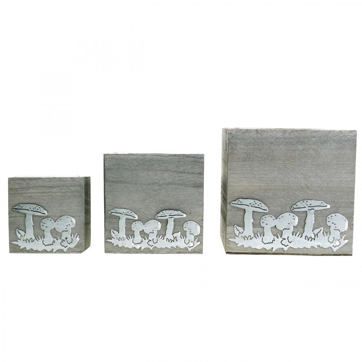Názov produktu: Drevené kocky s hríbikmi, jesenná dekorácia, truhlík na rastliny 20/16/12 cm sada 3 ks