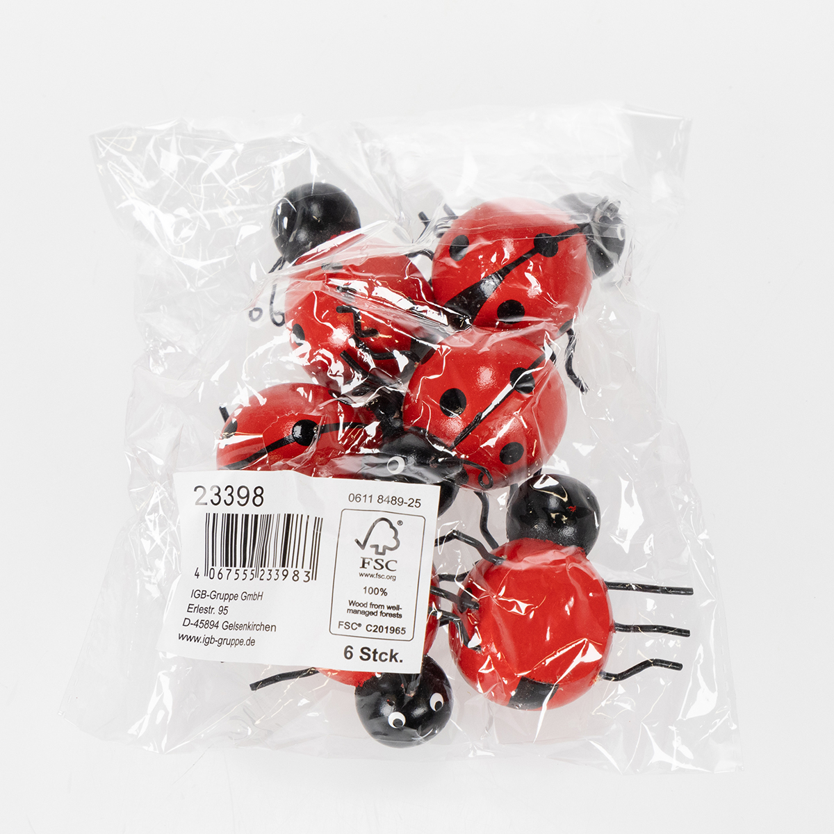 Názov produktu: Drevené lienky/ploštice pre šťastie ako roztomilé dekorácie do domácnosti, 5 cm, 6 kusov