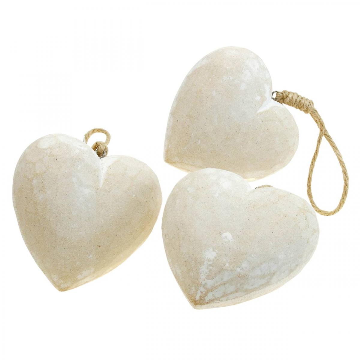 Drevené srdiečko Dekorácia Vešiak Dekoračné Srdce na zavesenie Biele 12cm 3 ks