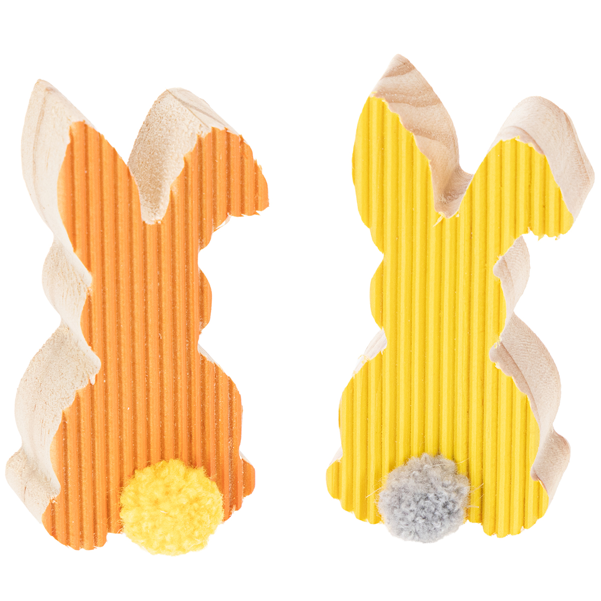 Drevené veľkonočné ozdoby v tvare zajačika, žlté a oranžové, 4x8 cm, 6 kusov