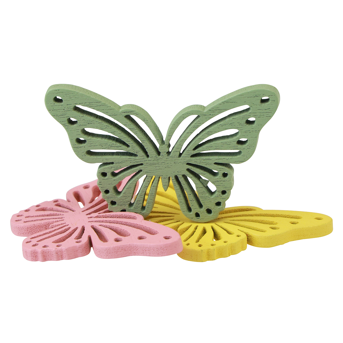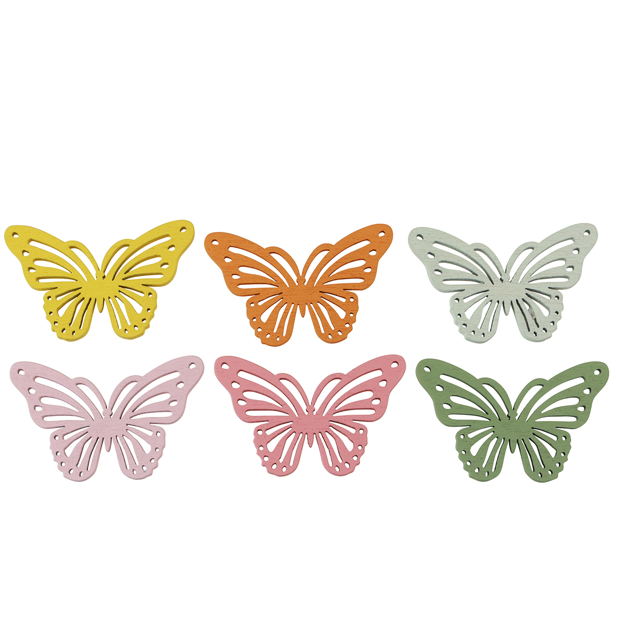 Názov produktu: Šejker drevený motýľ farebná posypová dekorácia 4,5×3cm 48 ks