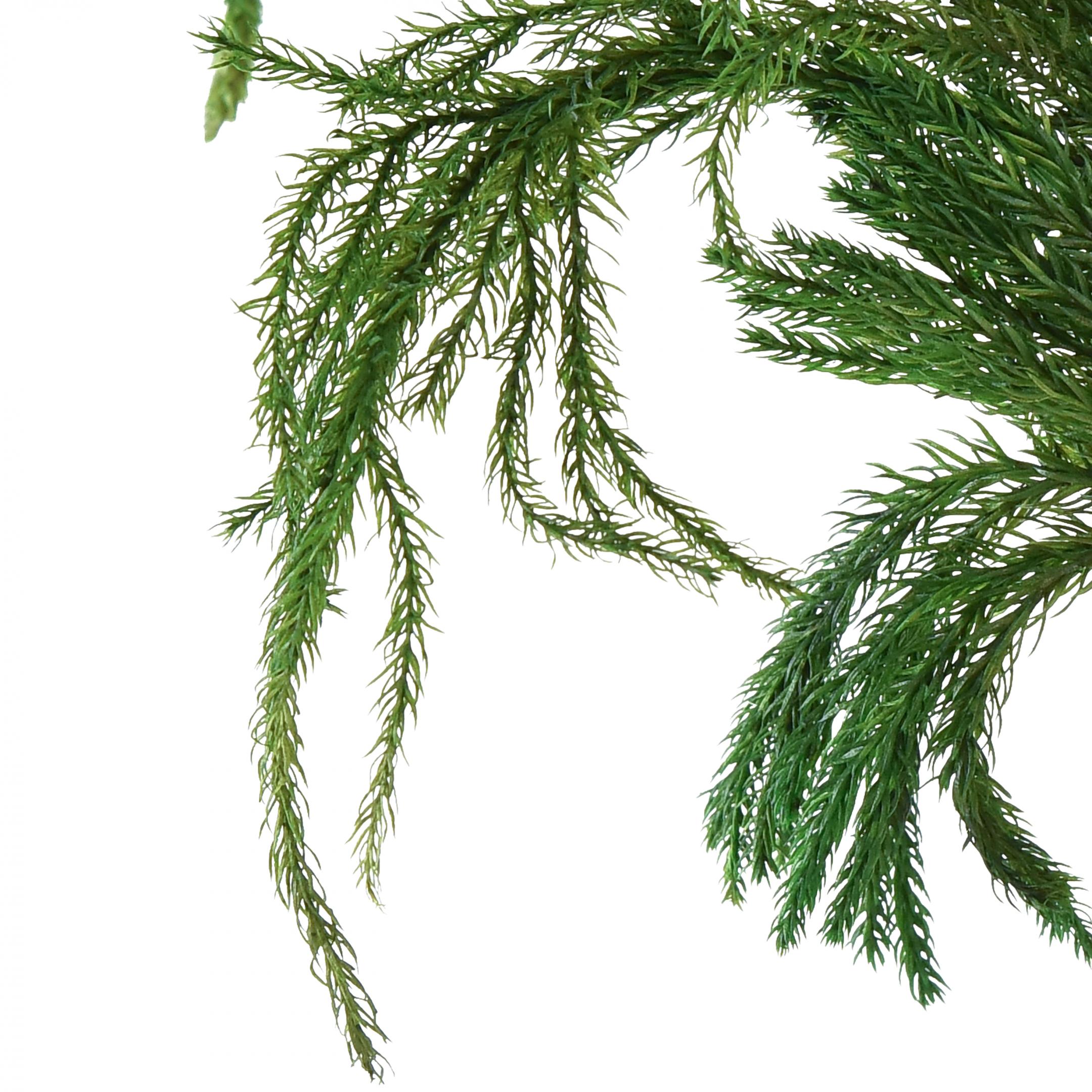 Mnohé dlhé a tmavozelené konáre s malými špicatými listami na jeho malej vetvičke skutočne vyzerajú trochu ako mach, najmä keď sú zložené, ale tiež trochu pripomínajú malé borovicové vetvy.