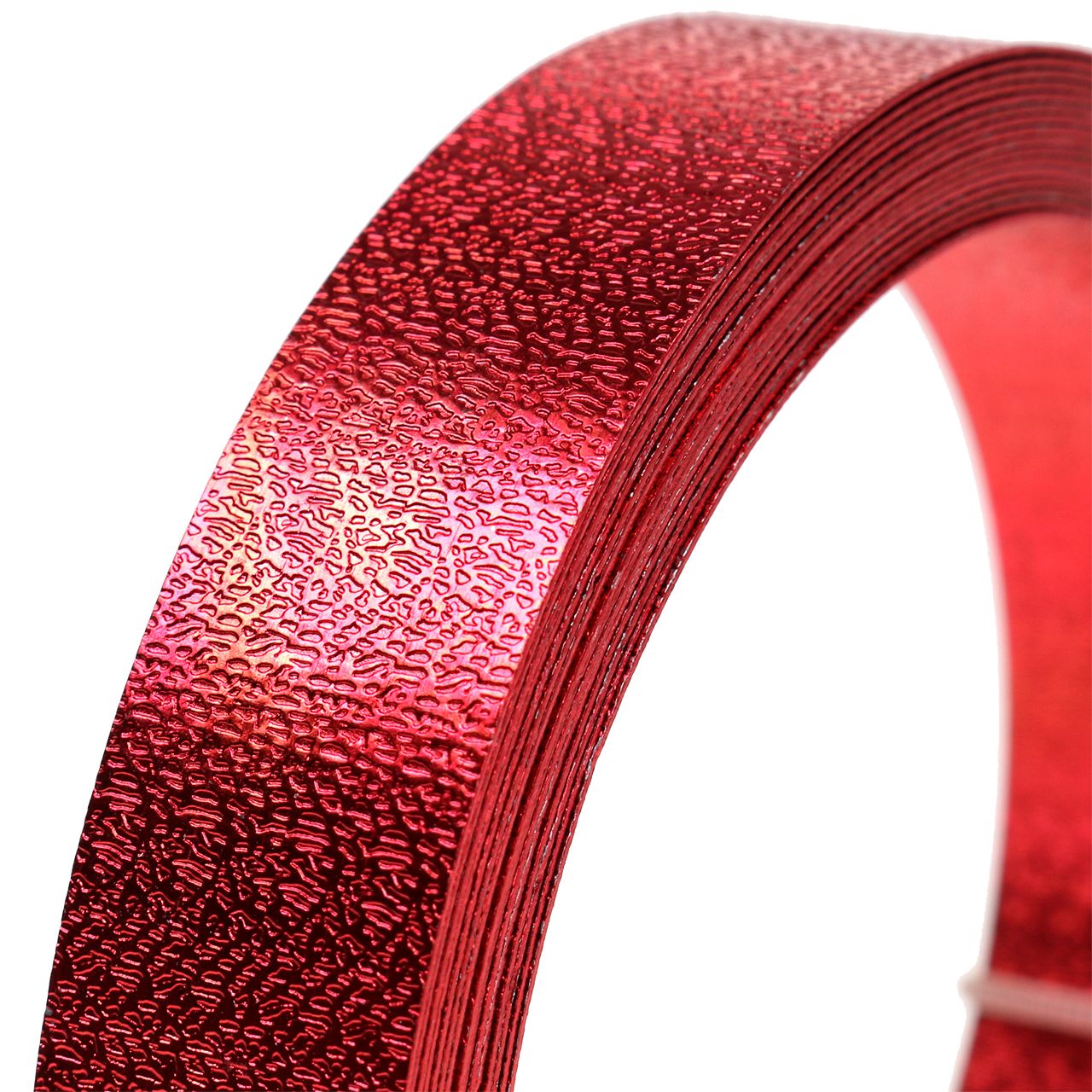 Červený hliníkový pásik je zvinutý vo vrecku a má dĺžku približne 5 metrov a hrúbku približne 0,5 milimetra. So šírkou okolo 20 milimetrov môžete zabaliť aj malý kvetináč a opticky ho zjemniť.