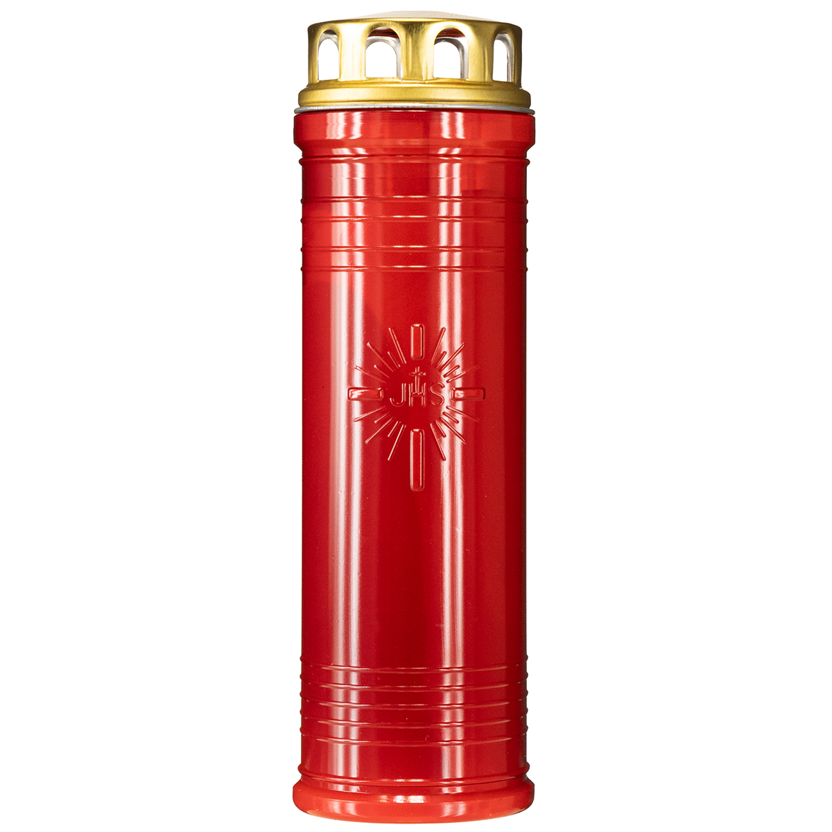 Hrobové svetlá v červenej farbe sú vysoké asi 24,5 cm a majú priemer asi 7,5 cm. Na prednej a zadnej strane plastového krytu sviečky je reliéf s krížom vo svätožiare a monogramom "JHS" uprostred. Tento monogram je skratka pre Ježiša a podčiarkuje dôležitosť viery, najmä v takej ťažkej chvíli, keď sme stratili milovaného človeka.