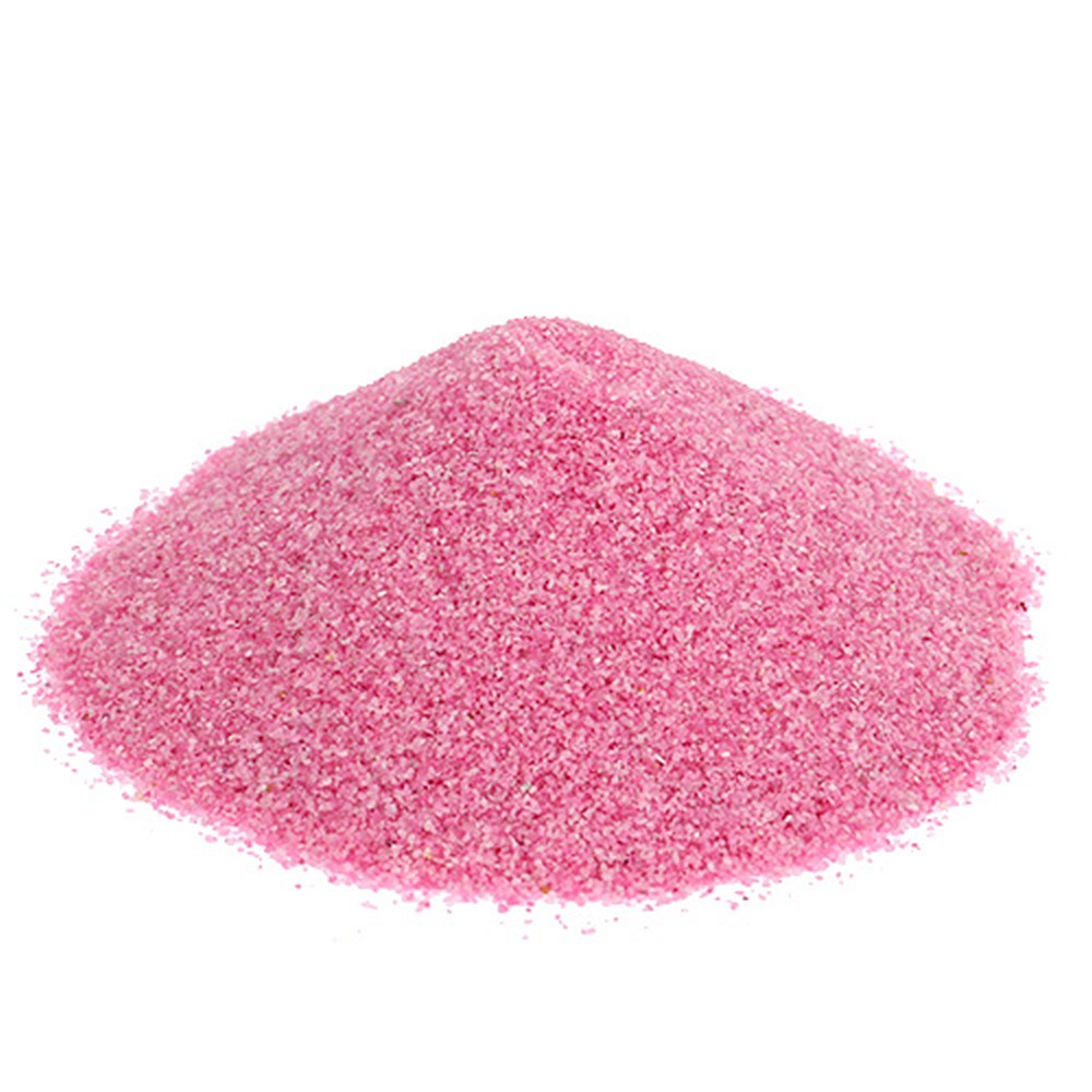 Farebný piesok v ružovej farbe je dodávaný vo vrecku s celkovou hmotnosťou 2 kilogramy. Kamienky majú veľkosť cca 0,1 až 0,5 milimetra a dajú sa použiť aj ako rozptylová dekorácia na konferenčný stolík.