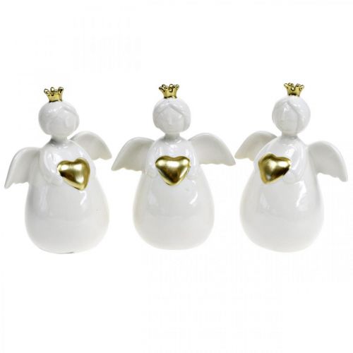 Figúrka anjela keramická biela, zlatý anjel strážny 10×6,5×13cm 3ks
