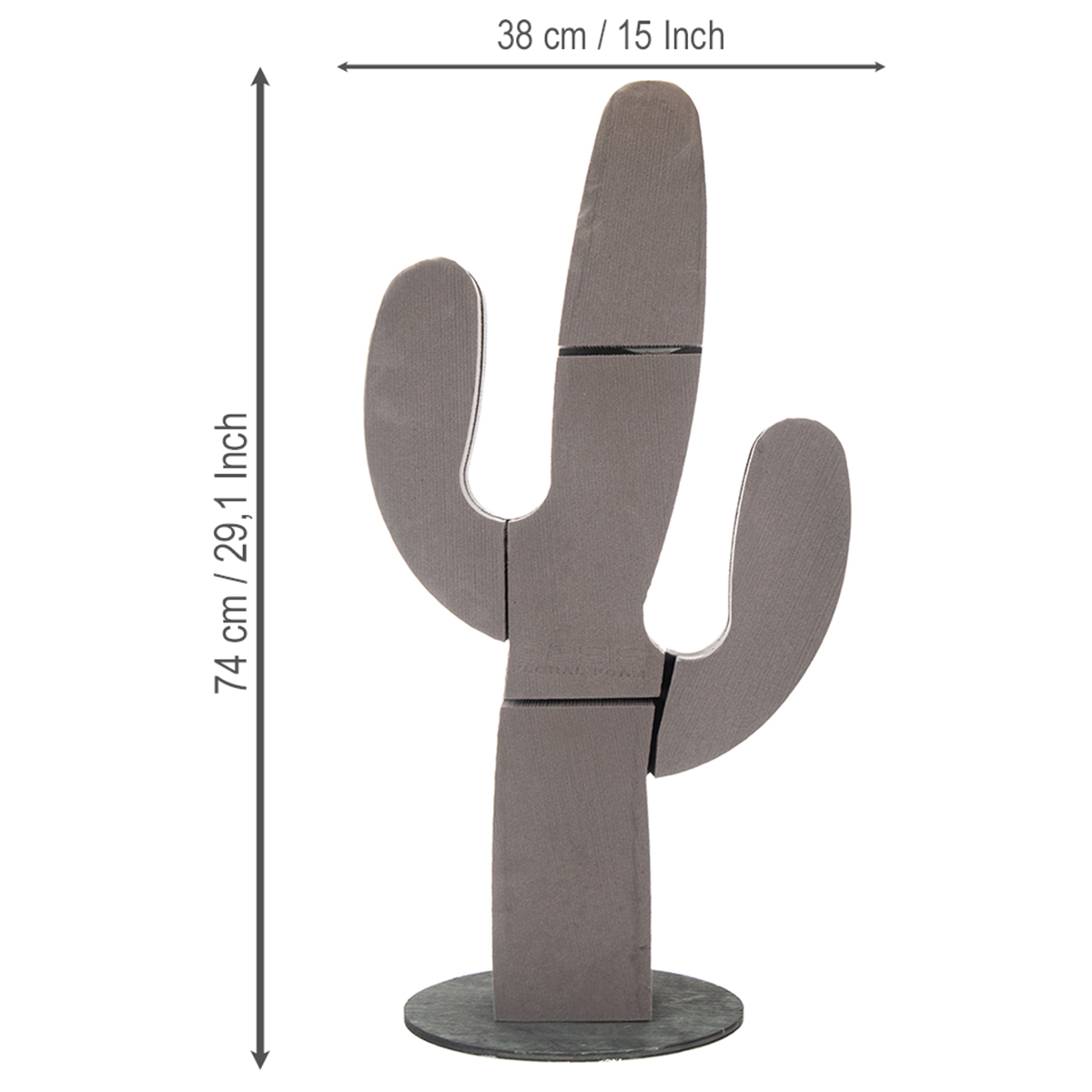 Kaktus OASIS® BIOLINE® s dreveným podstavcom má rozmery približne 38 cm x 74 cm.